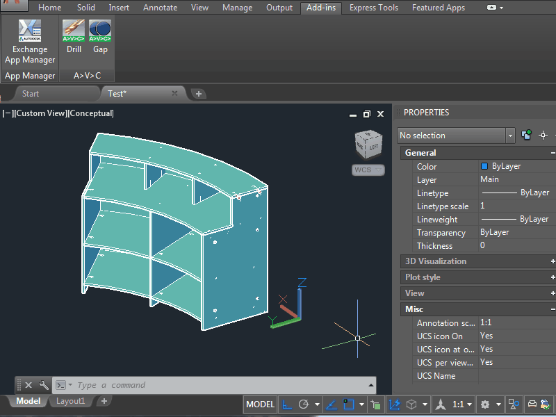 The standard command "Subtract" requires selecting each item individually and destroying the subtracted solid. Because this work is unbearably long, now you can select all the details and holes in one frame. Press the button Drill and wait quietly until the program will do all the work itself. The program itself finds details, finds hole solids (it must be on a special layer “Holes”), and subtracts. act every hole. One hole can penetrate a lot of detail; you do not need to make copies of the subtracted solid. Details are not glued together (as does the command Subtract).