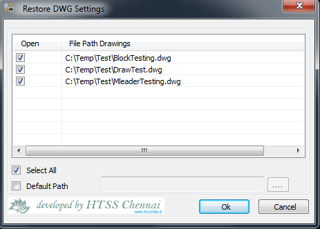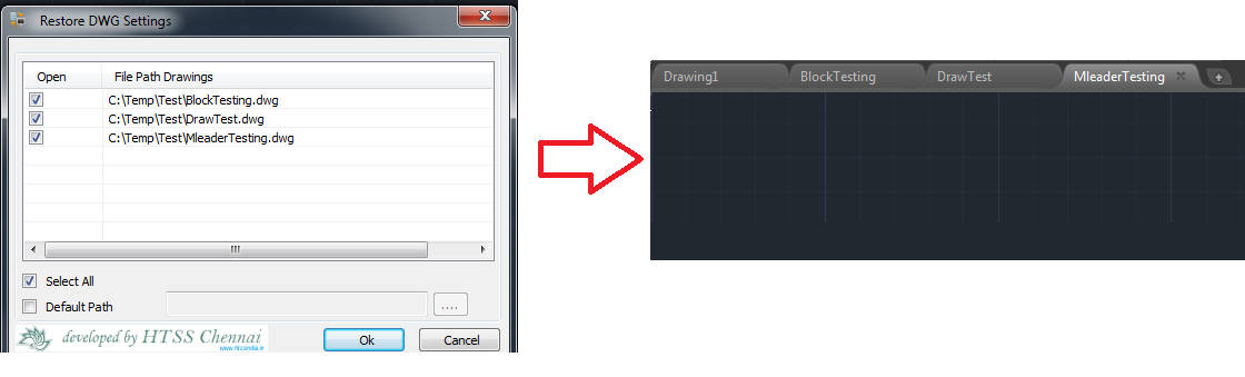Using this Add-in, the user can open all the drawing files from the previous AutoCAD session in one go. The drawing files opened in AutoCAD during the quit process will be considered for restoration when the AutoCAD is started next time. |