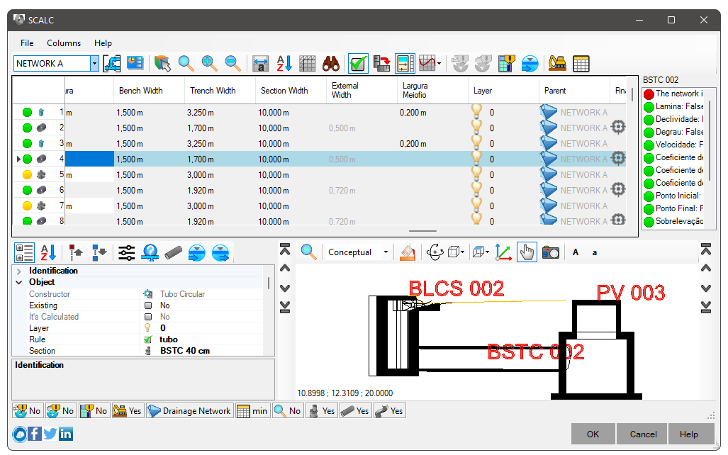 The SOLIDOS program has several rainfall equations from all over the country and it is very simple to add other equations. In the water and Sewage Networks, there are several methods for forecasting population growth, since the network is dimensioned at the beginning and end of the project period. The generation of reports and quantitative automated by the plugin, with the possibility of inserting dynamic tables in the project or external reports.