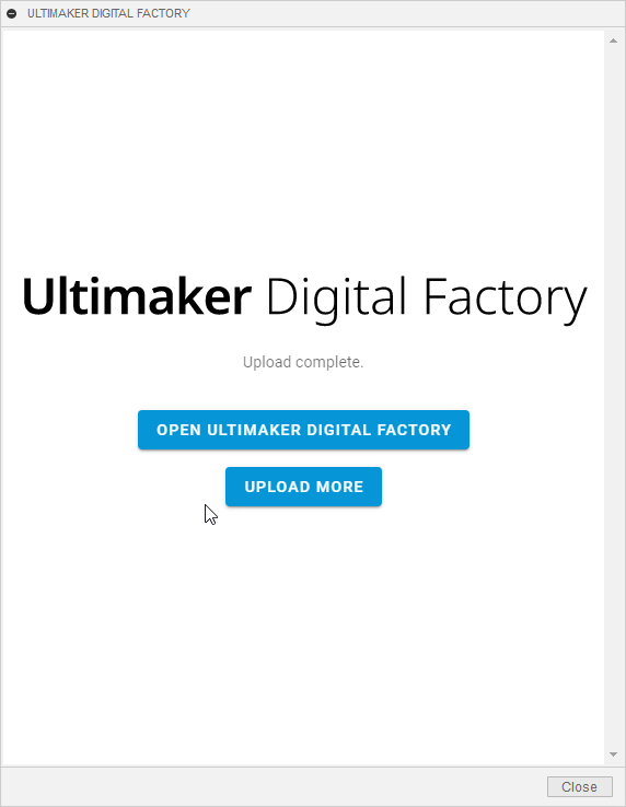 The Addin is a connector between Autodesk® Fusion® and the "Ultimaker Digital Factory" site and its services. It links to the accounts on the Ultimaker service and allows to share Fusion projects with it.