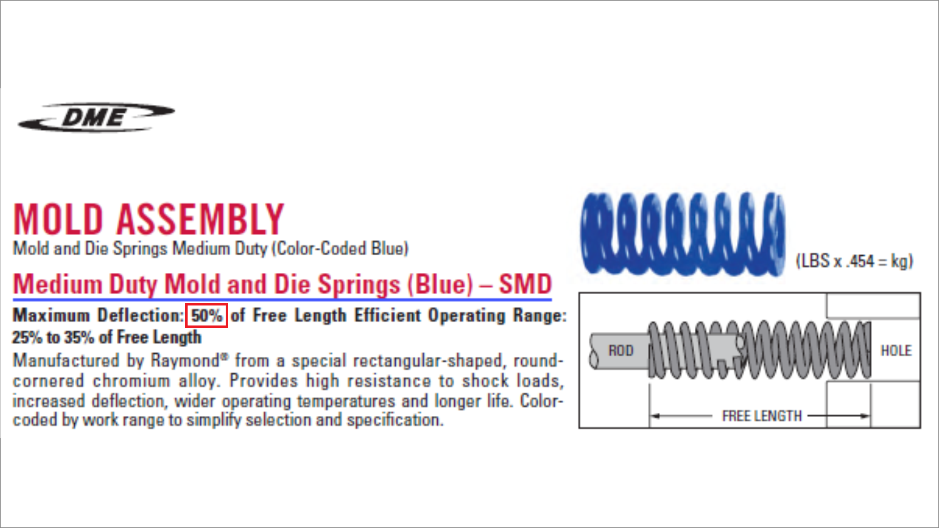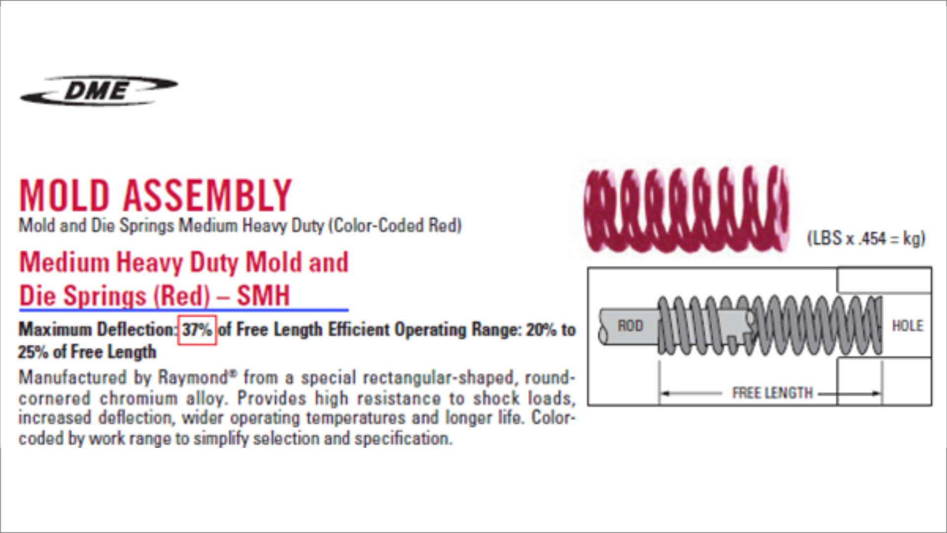 This add-in serves as an essential tool for incorporating mold/die springs into your assembly design. Drawing from the comprehensive DME catalog, it effortlessly generates springs based on user-defined specifications selected from an intuitive drop-down menu.