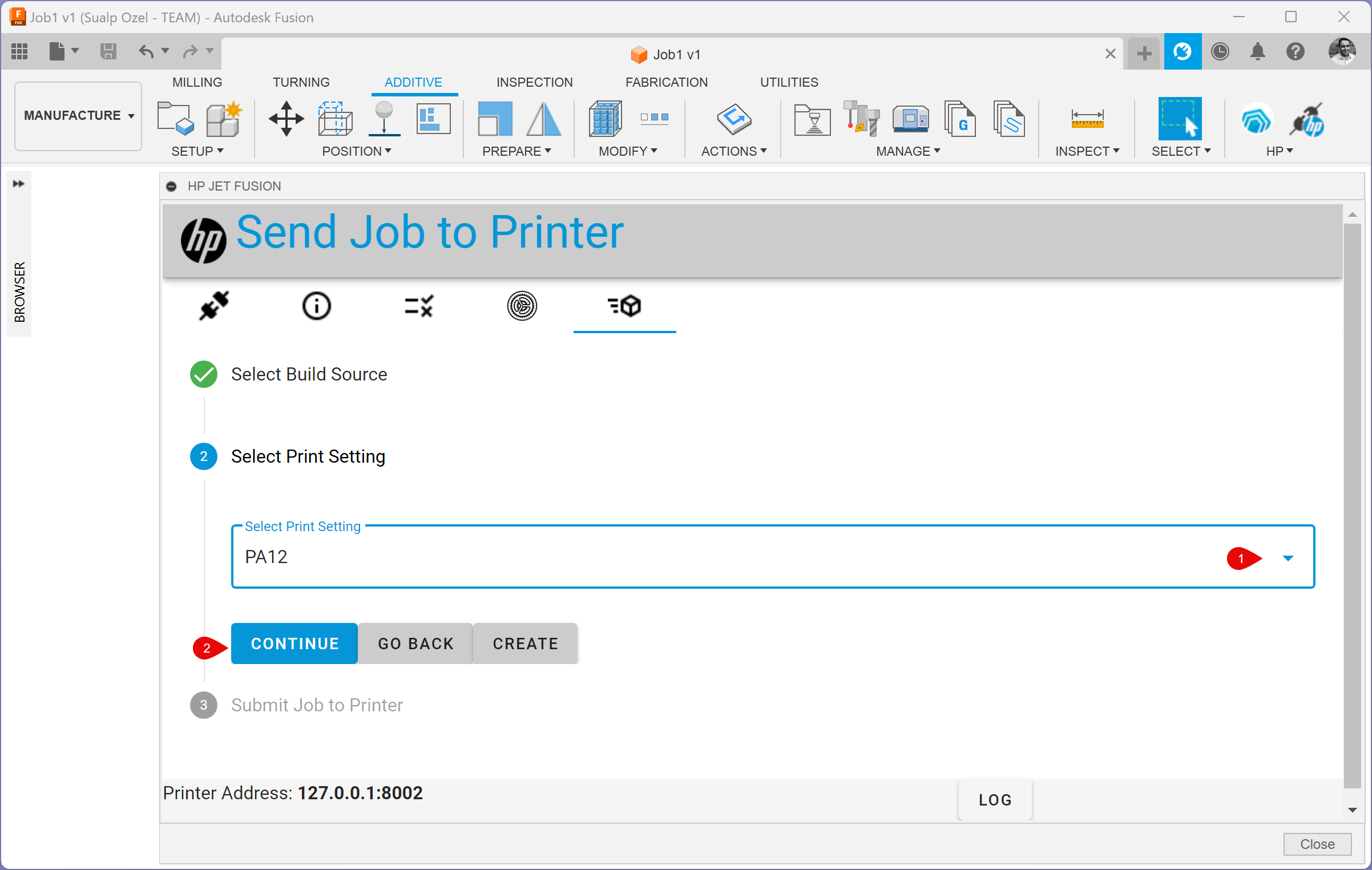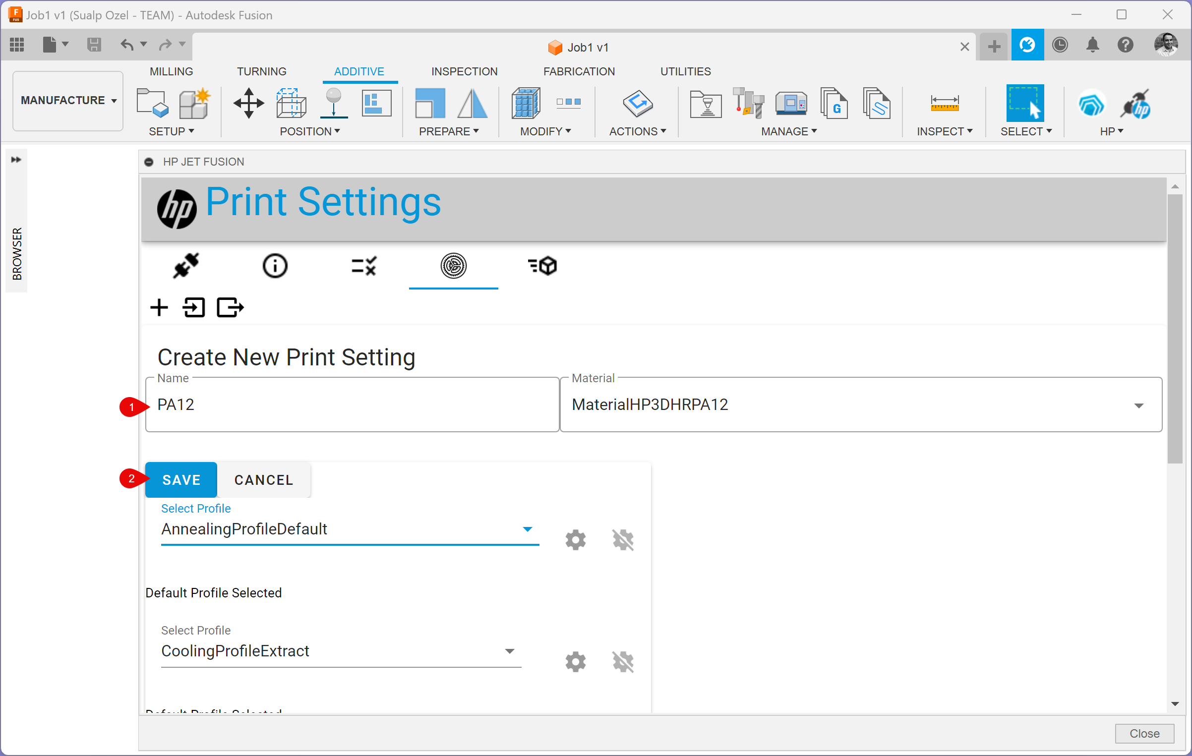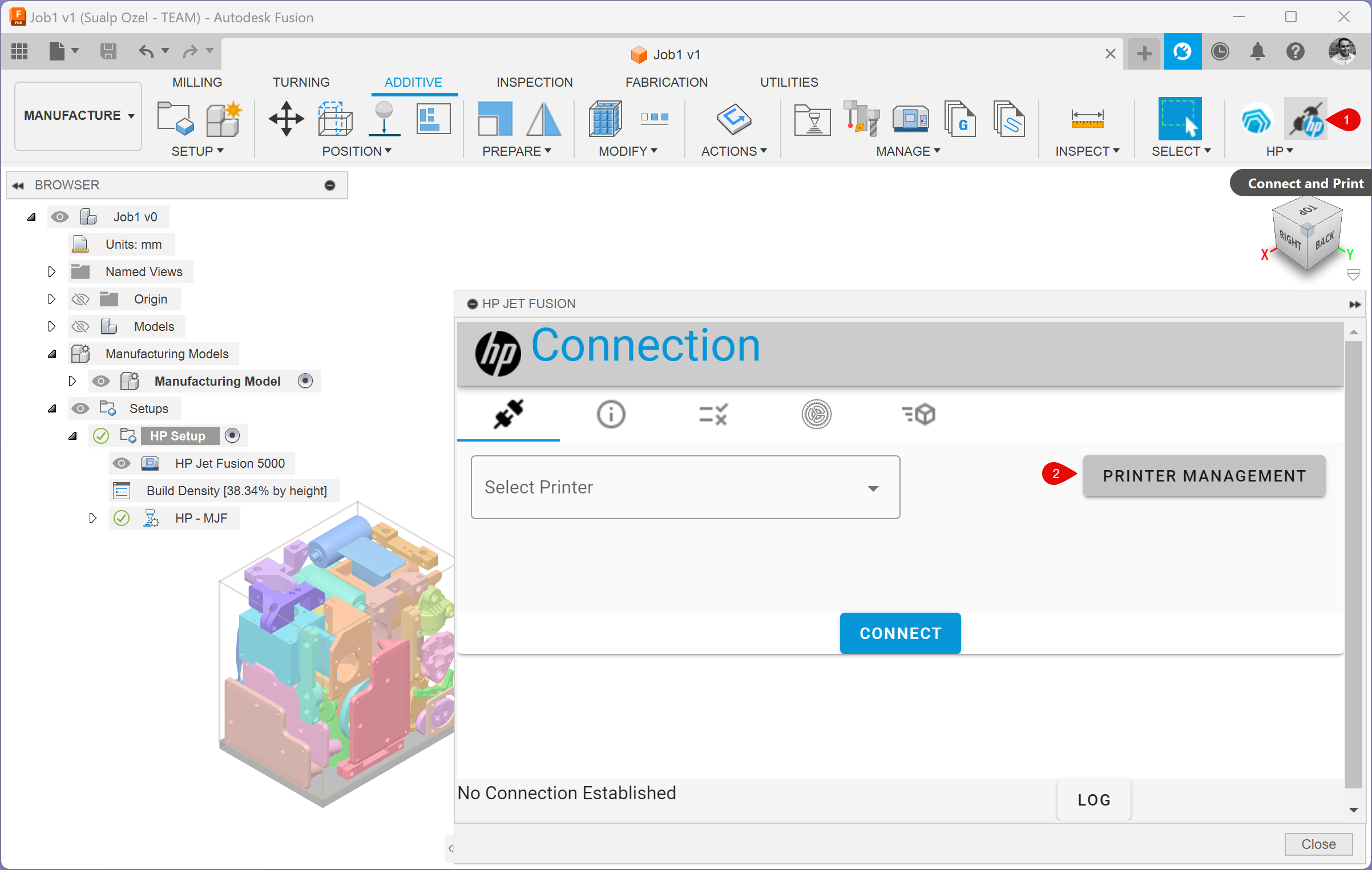 - changed the preselected printer to MJF 5000 when creating an additive setup using the HP app within the Design workspace of Fusion