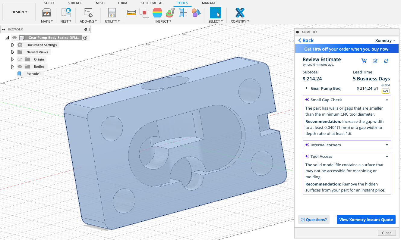 Xometry Instant Quote Add-In for Autodesk® Fusion®