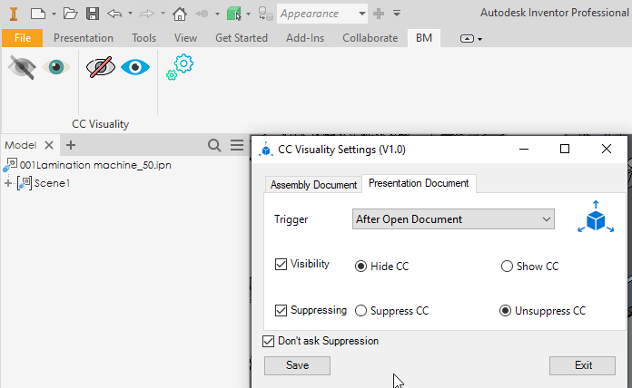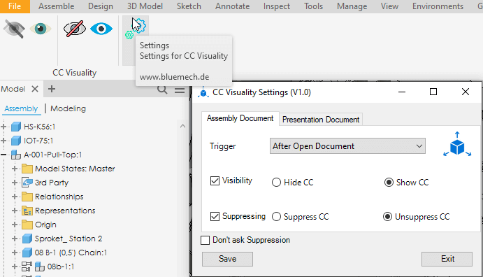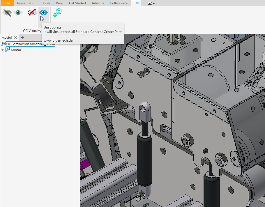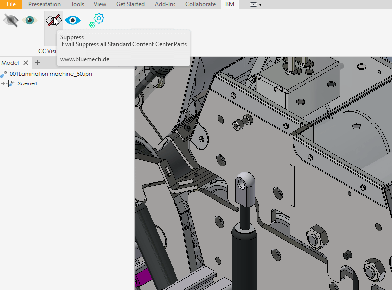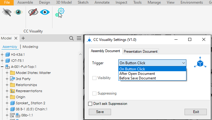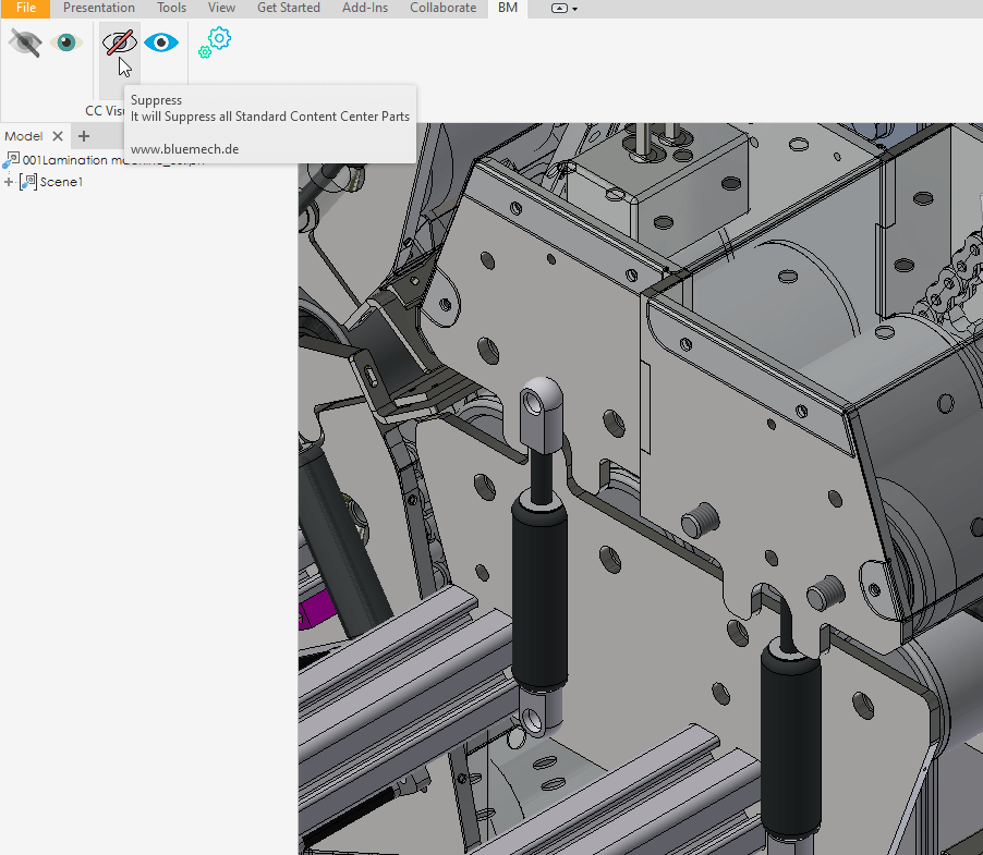 CC Visuality (Content Center Visuality) will help Autodesk® Inventor® users to easily control Content Center Parts (Visuality and suppression).