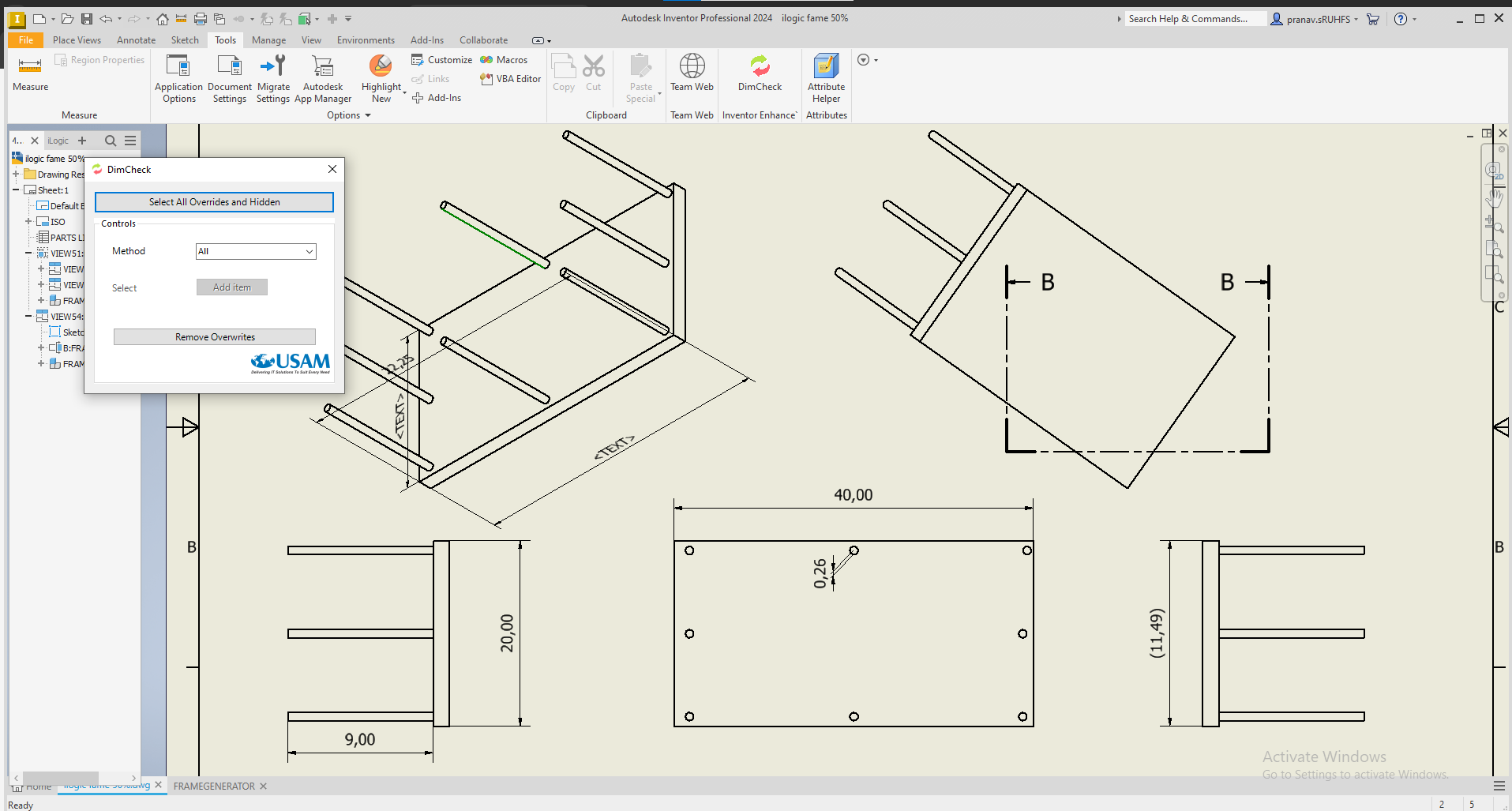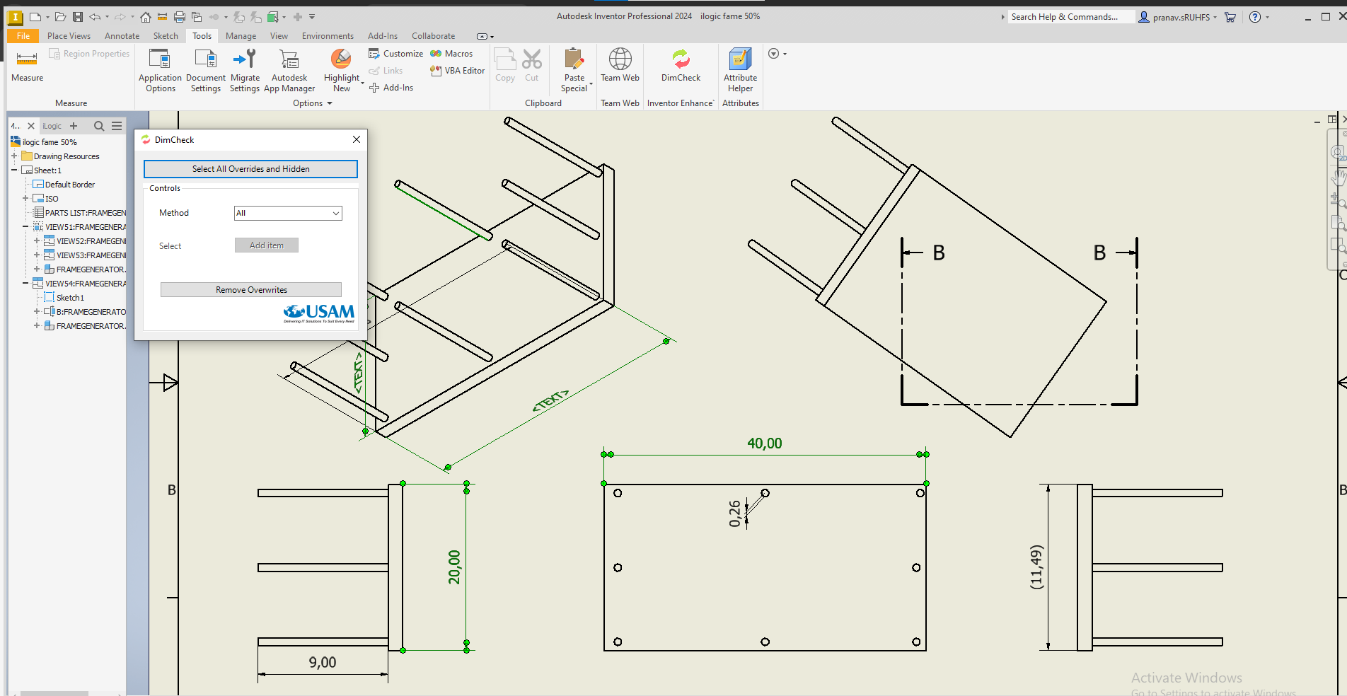 DimCheck is a specialized Autodesk® Inventor® add-in created to ensure the accuracy and integrity of IDW drawing files. This powerful tool scans your drawings to identify any dimensions that have been manually overridden, rather than displaying the actual measured values. Overridden dimensions can lead to discrepancies and errors in manufacturing, as they do not reflect the true measurements of the components.