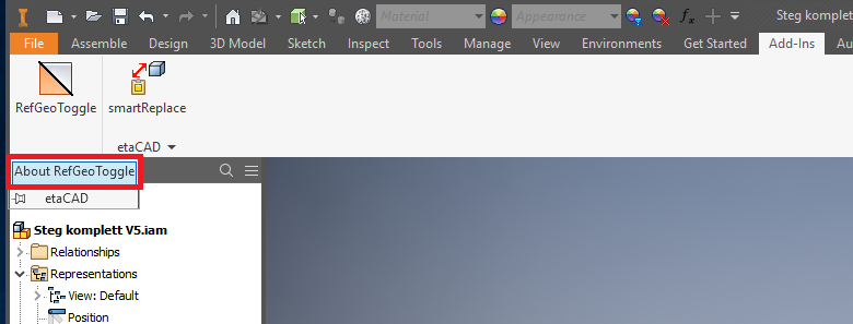 This add-in gives you the possibility to show or hide the reference geo for the active part or assembly file. But that’s not all. The biggest benefit is that it also works with every selected occurrence in an assembly, and you can select to progress all sub occurrences as well.