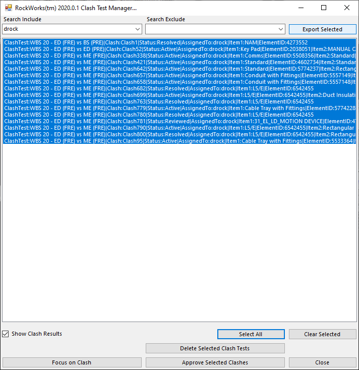 RockWorks is so helpful; it enables me to quickly filter the clash tests I’m interested in then export the results including the element IDs. As a Revit modeler I’m able to quickly find the elements in Revit and coordinate.