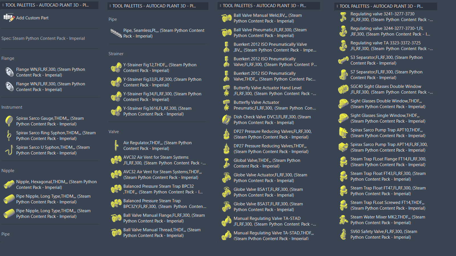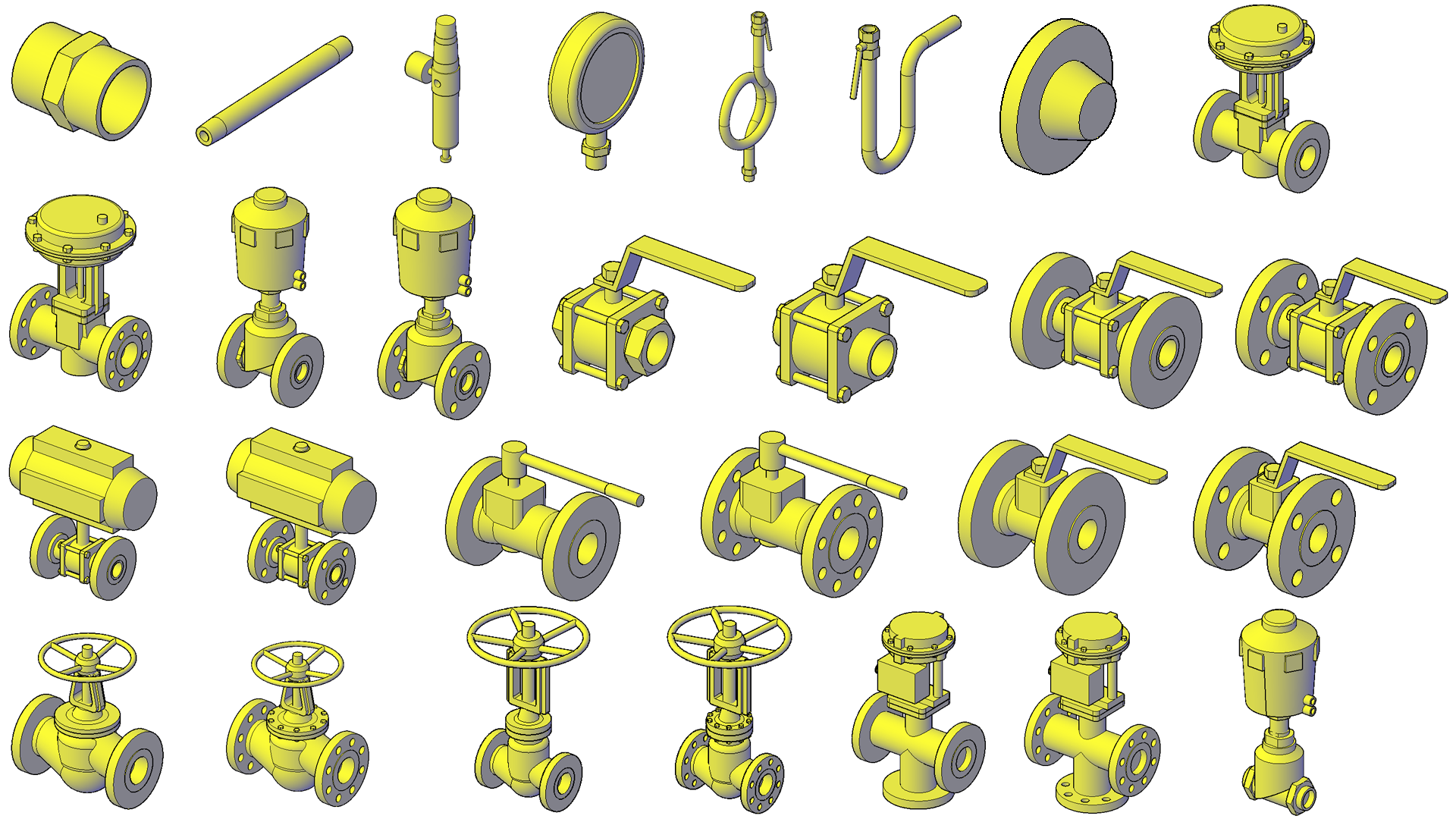 This comprehensive catalog is ready to use in your Steam project. It is comprised of common Valves, Instruments, etc. If you’re creating a new project or just integrating it as a part of the whole project, this catalog will be a great starter.