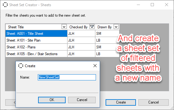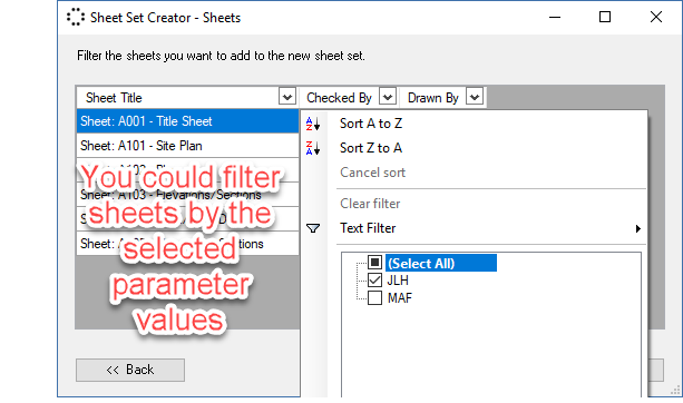 Also, you could create new ones by using a table and filtering sheets based on their parameters. This is very practical because most of the time there are too many sheets and it's hard to select the desired ones. And as a result, the probability of mistakes in selection sheets will increase. This plugin helps you to create sheet sets easily by a filtered table.
