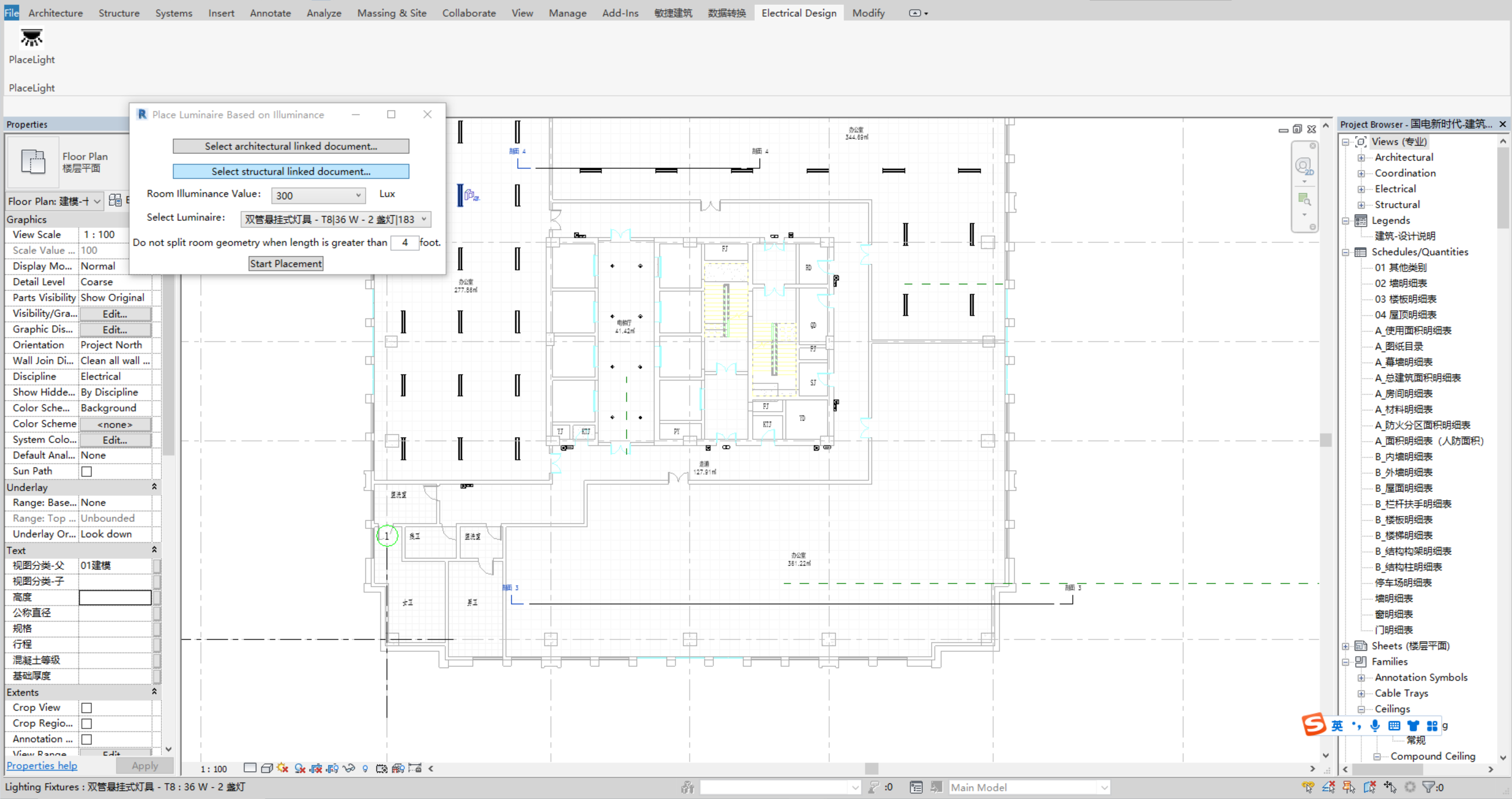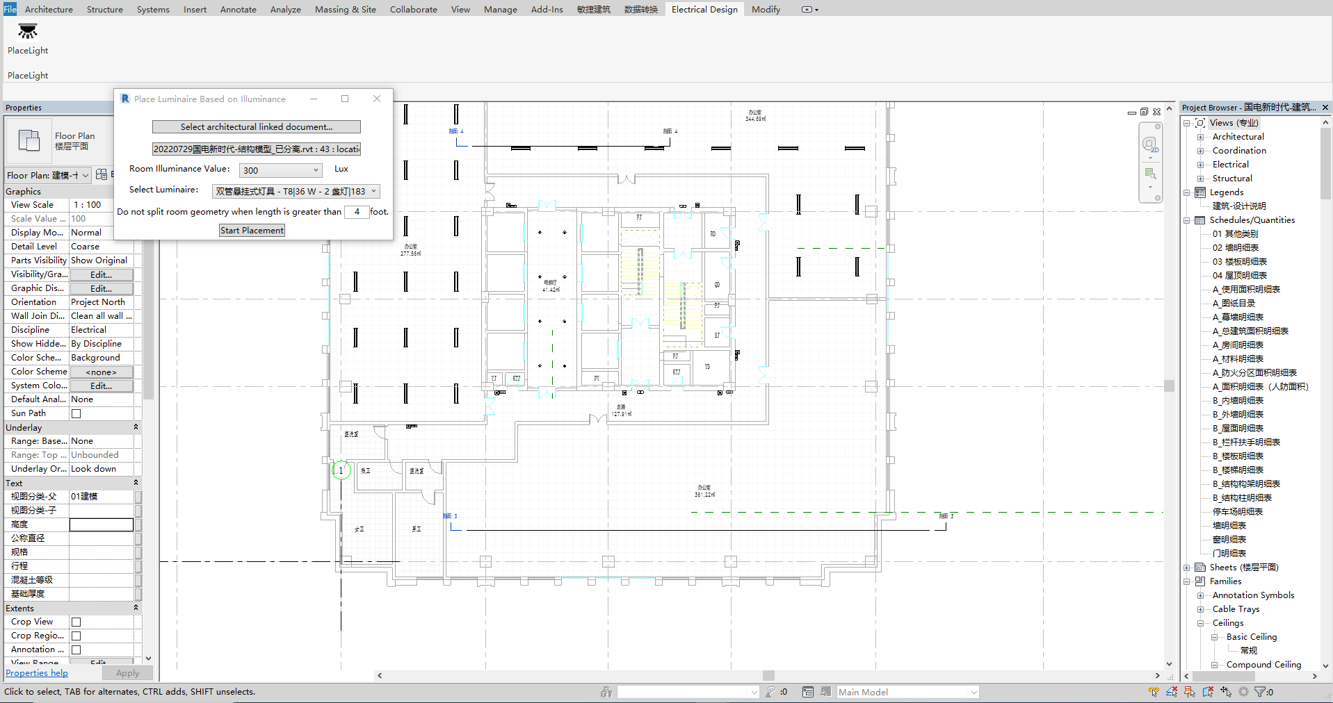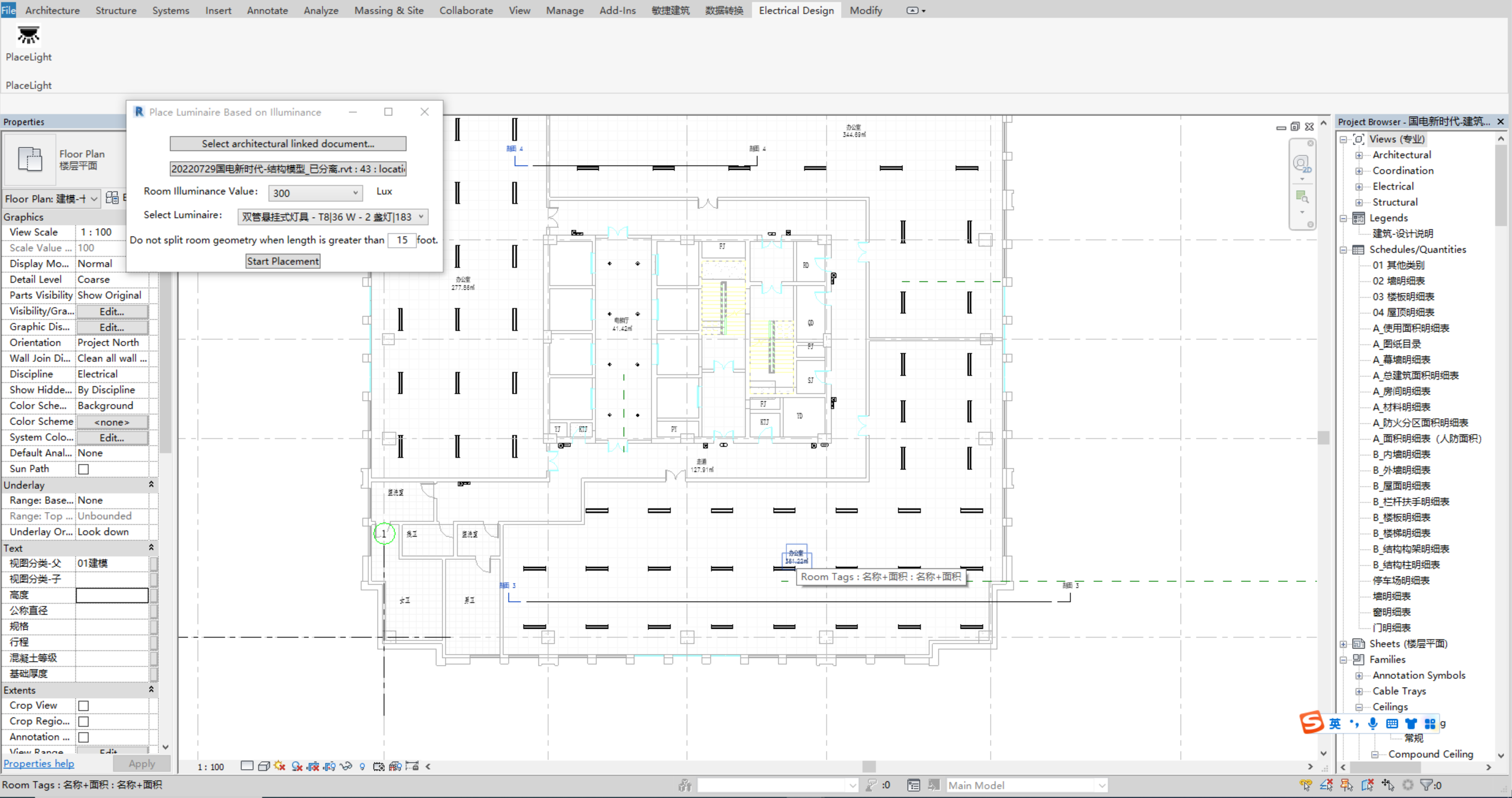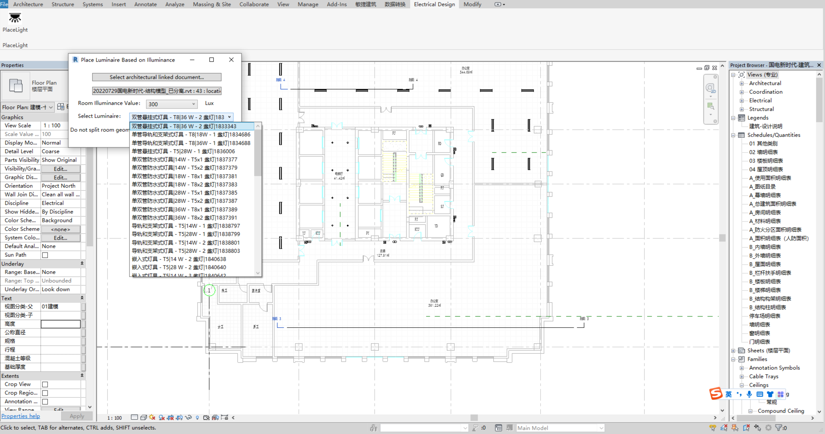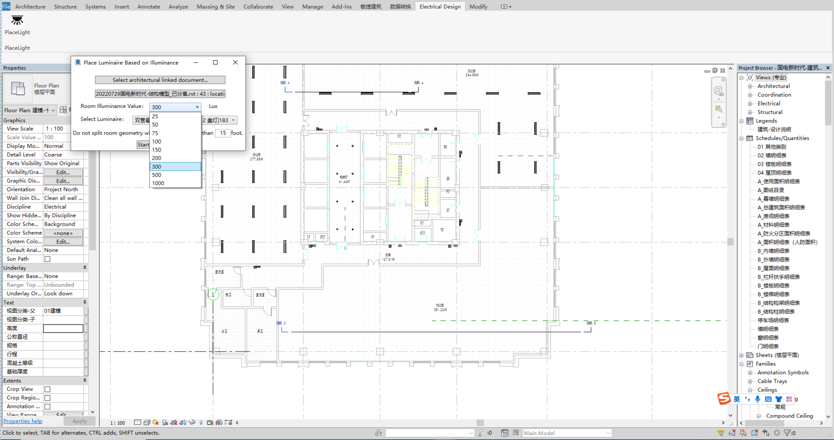 The program will automatically calculate the number of lighting fixtures arranged in the room based on the selected illuminance and lighting type and the lighting fixtures will be arranged on the ceiling or floor of the room.