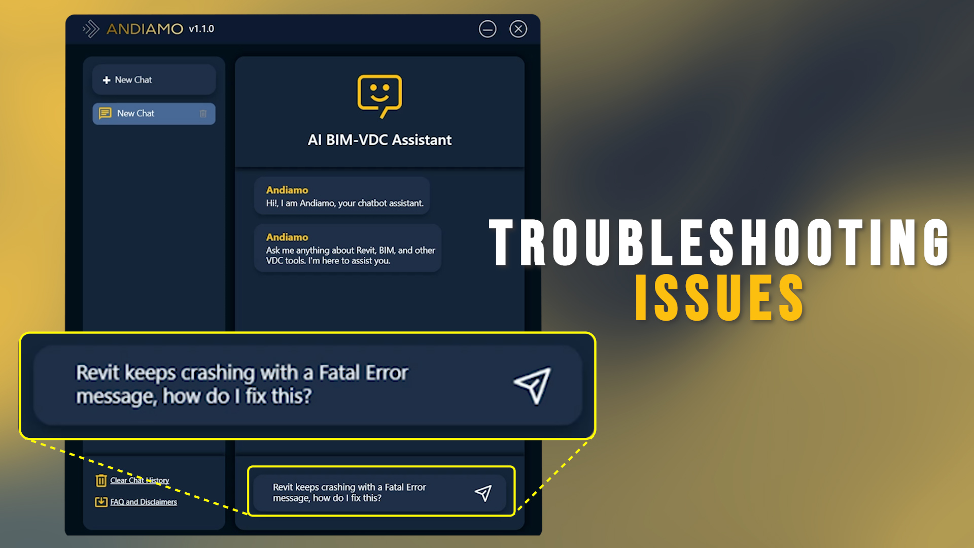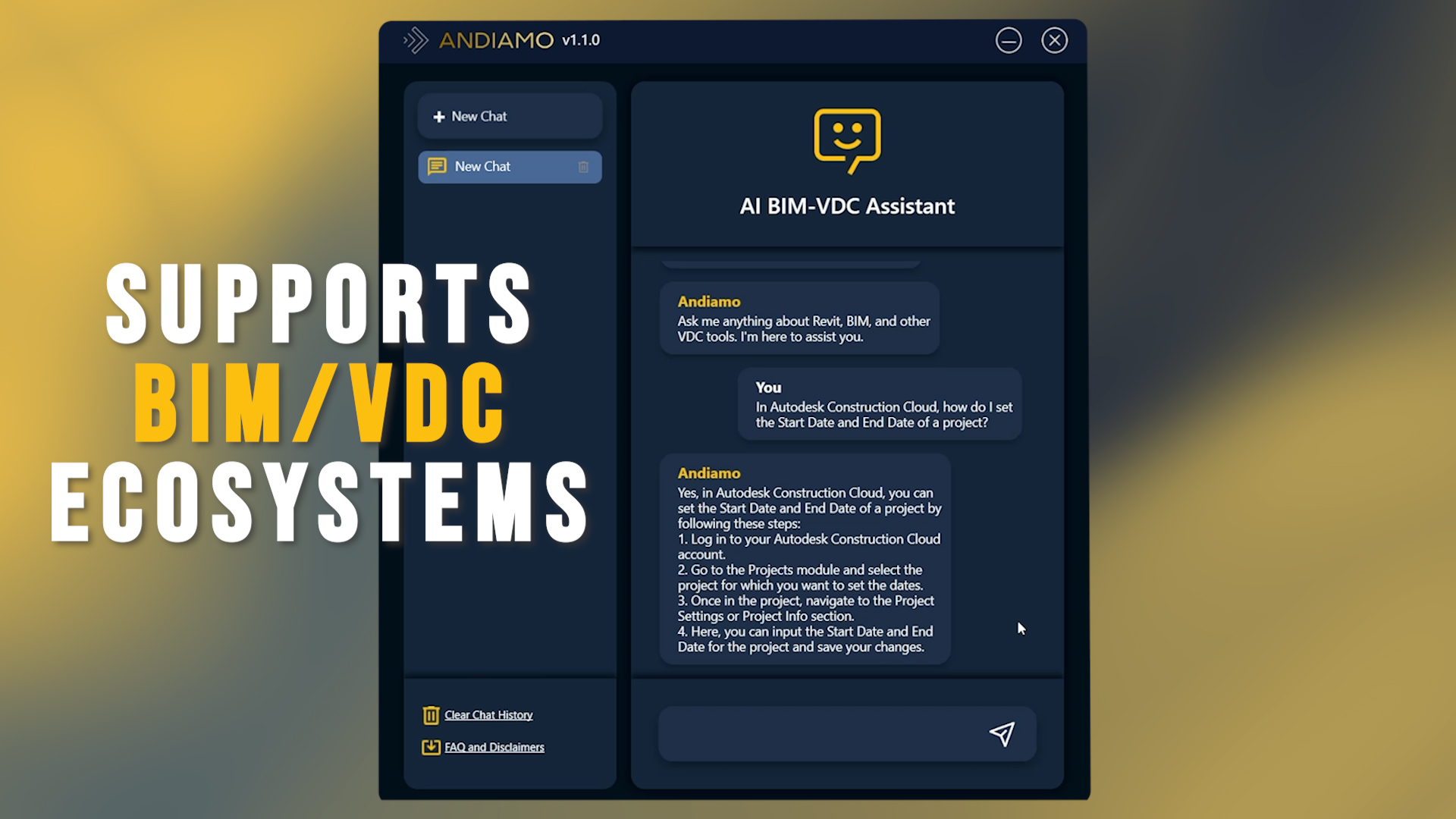 ANDIAMO® isn't just another ChatBot; it's a revolutionary AI assistant that transforms the way teams interact with BIM/VDC tasks. It's designed to reduce time spent on troubleshooting and repetitive questions, enhance efficiency, and ensure every team member can contribute their best.