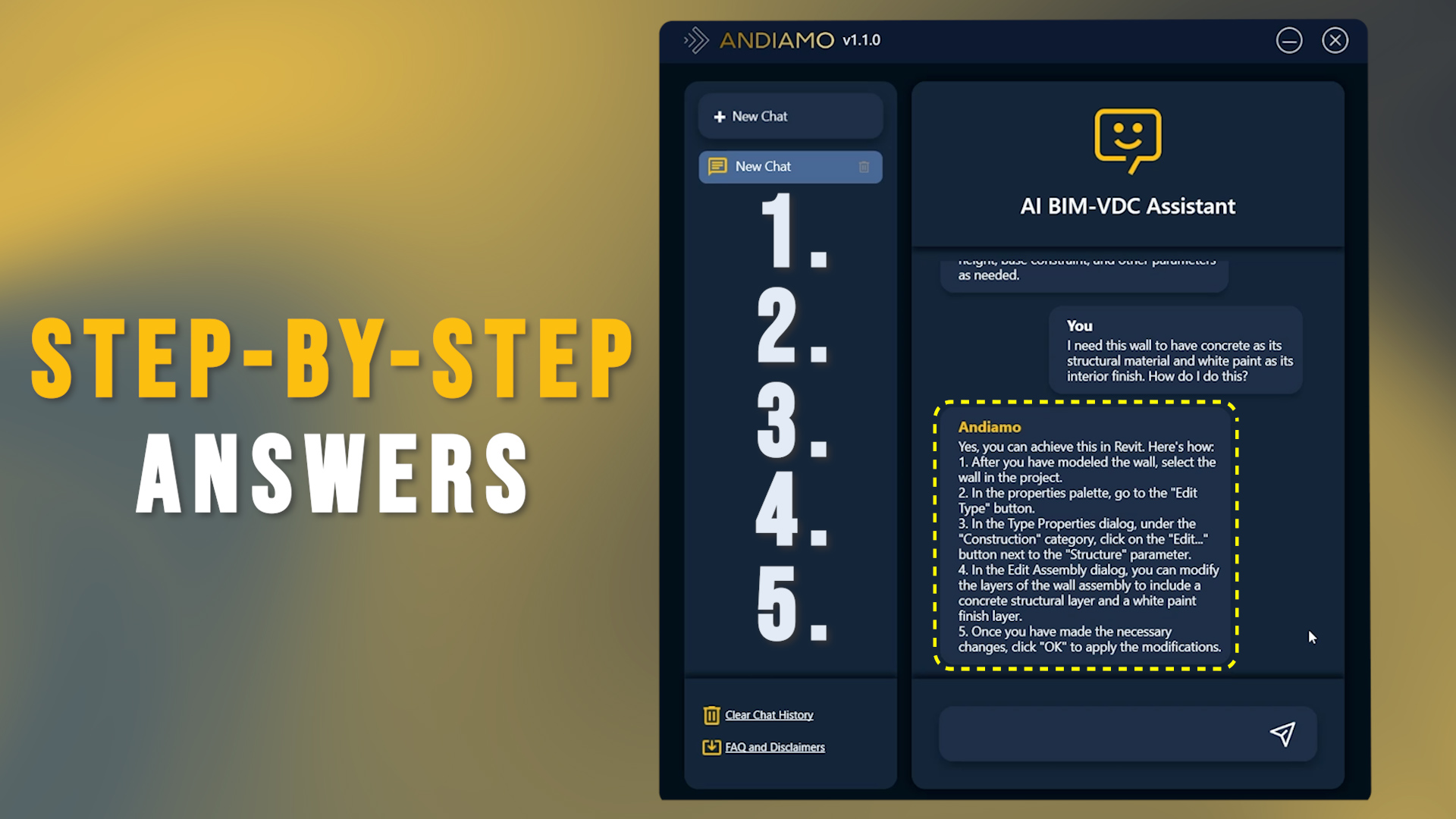 Seamless Integration with Your Workflow: ANDIAMO® fits perfectly within your current Revit environment, providing answers and assistance without interrupting your workflow. Its direct access means help is always just a query away.