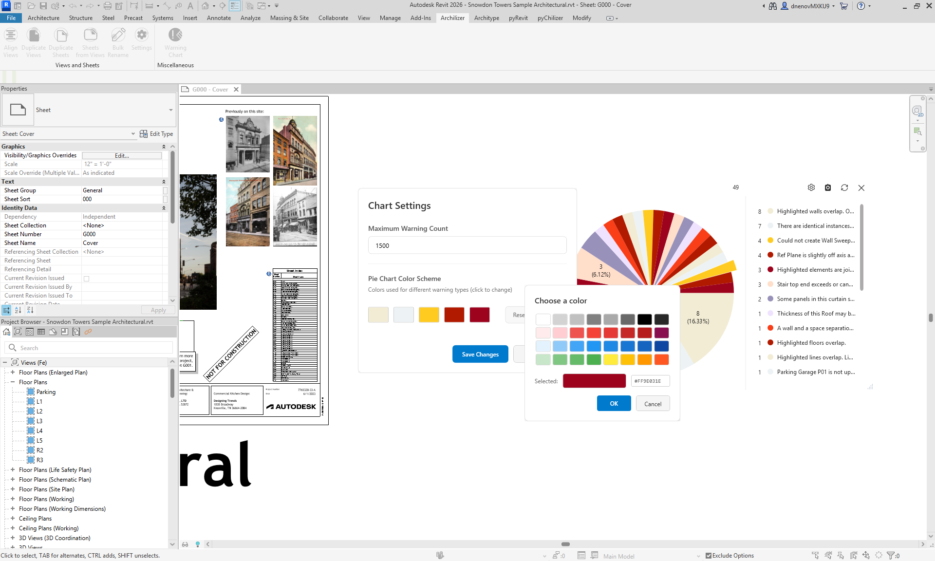Warchart stands for Warnings (Pie) Chart. Warchart is a visual interactive tool that helps you navigate, isolate and ultimately eliminate Autodesk® Revit® Warnings. The real-time update of the chart will follow your progress and give you immediate feedback.