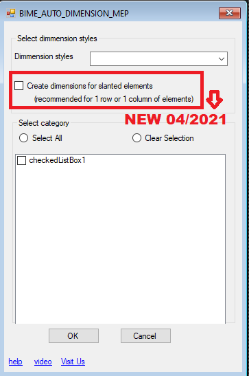 Add the ability to create dimensions for slanted elements (recommended for 1 row or 1 column of elements)
