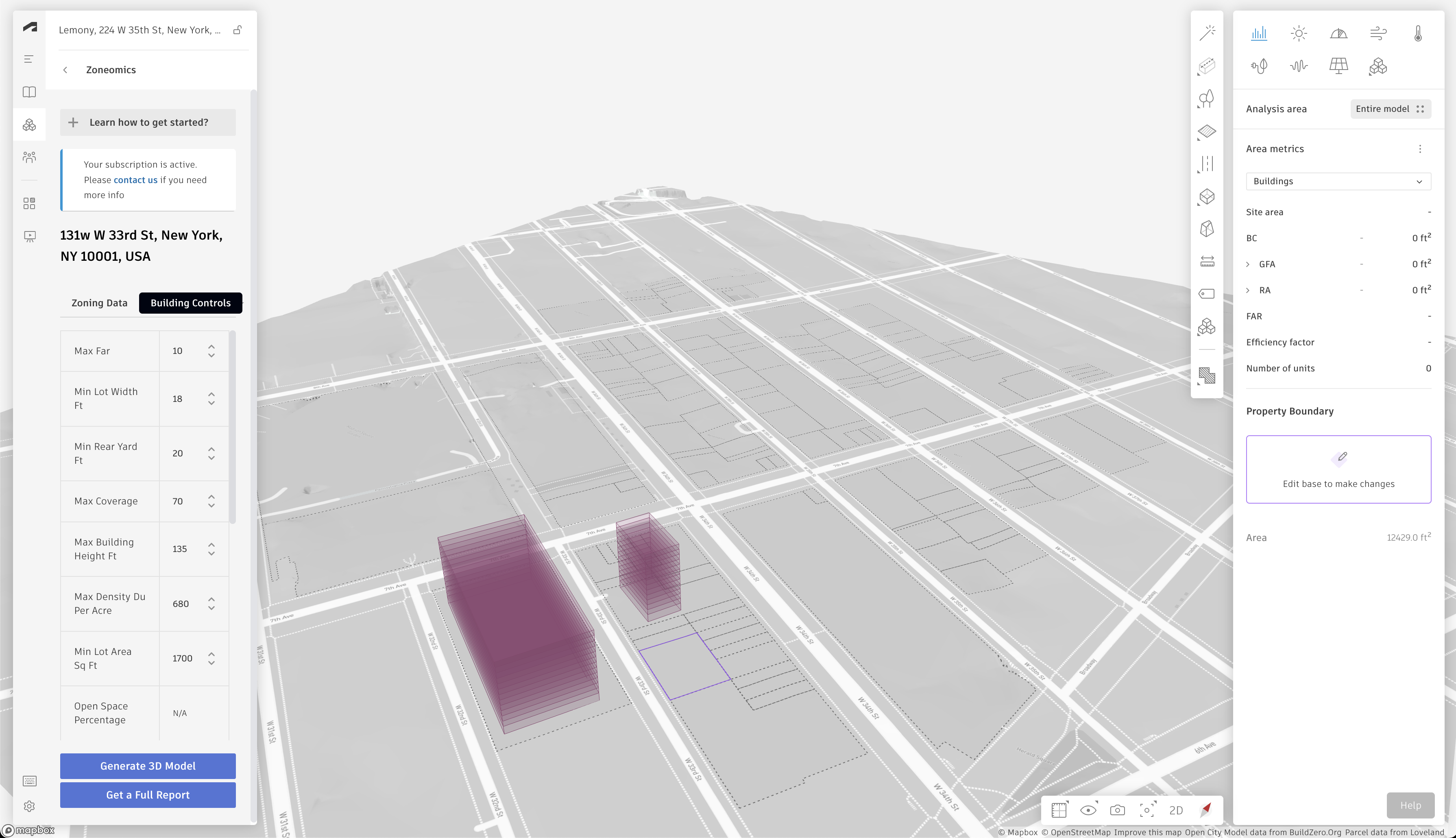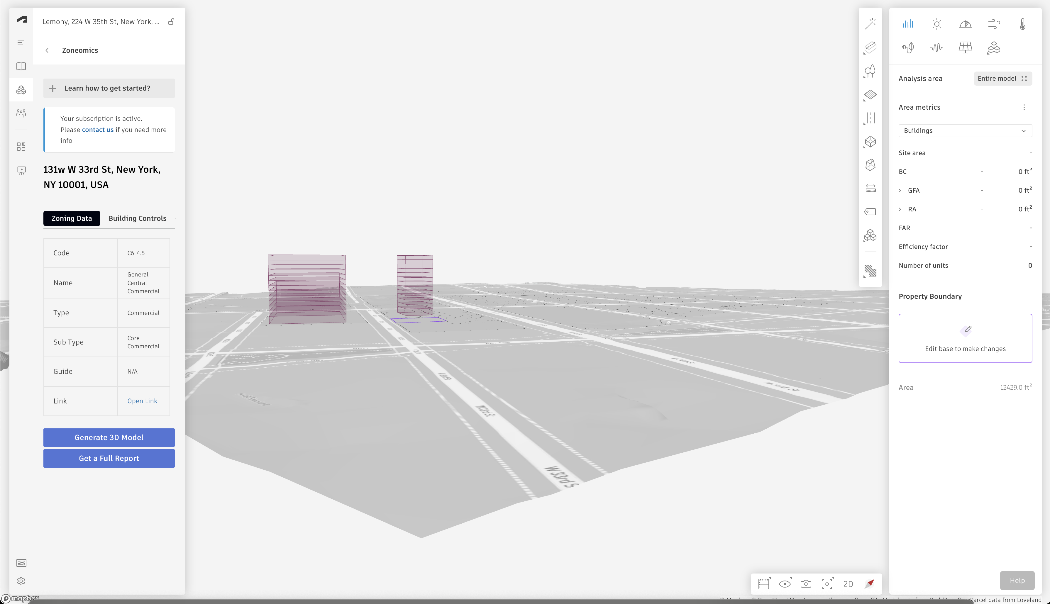 Zoneomics 3D Envelopes is an Autodesk® Forma® extension developed by Zoneomics. It enables users to quickly discover Zoning-related data for their chosen property.