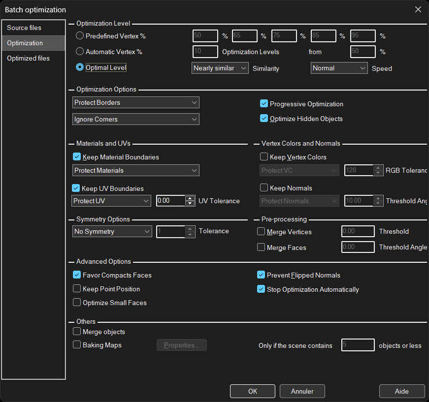 - A utility plugin that includes a built-in OpenGL view and gives precise control over how the optimization is performed.