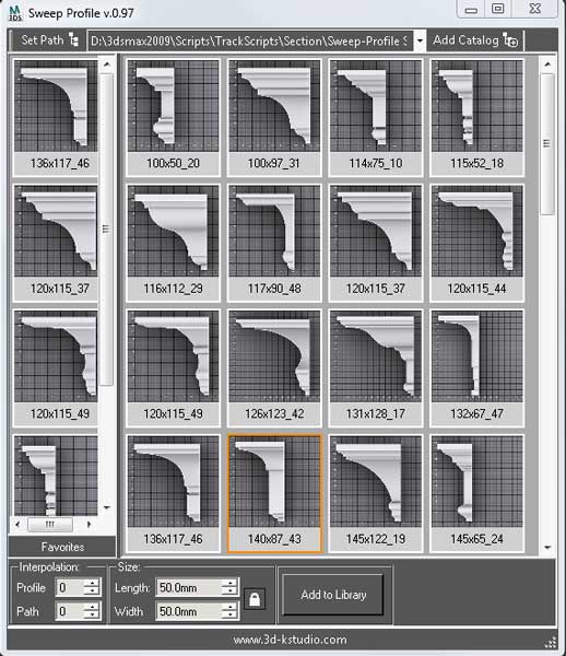 For adding custom profile to library select a shape from scene and press the button "Add to Library".