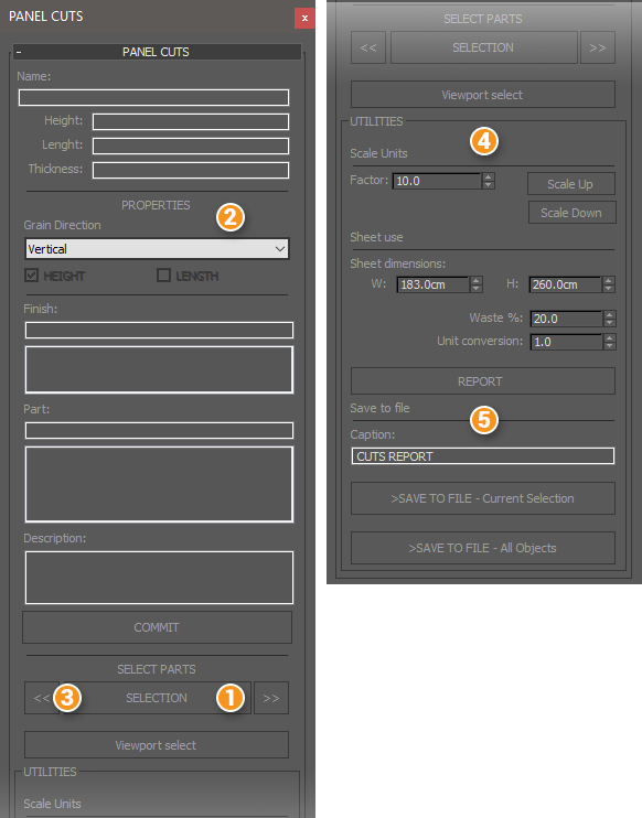 - Export a .csv file with Part quantity, dimensions, finish, grain direction, and part and description values. It can be exported later in a spreadsheet or cut optimization software.