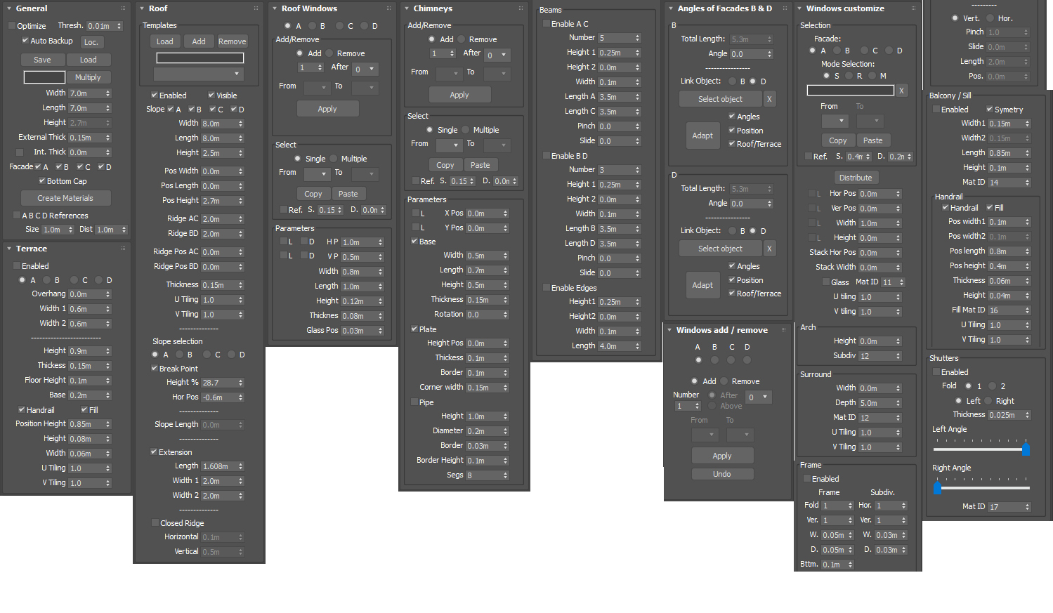 - Every part of the house has its own material ID making texturing easier, some parts have a customizable material ID.
