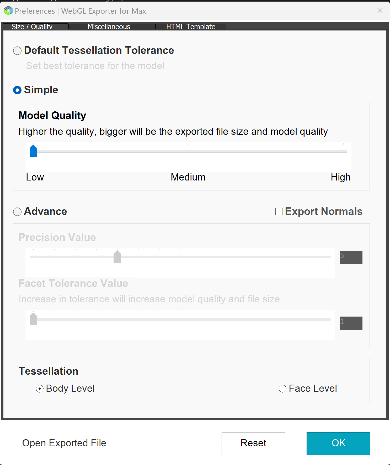 - Tessellation Options: Choose whether to tessellate at the body level or face level for optimal model fidelity.