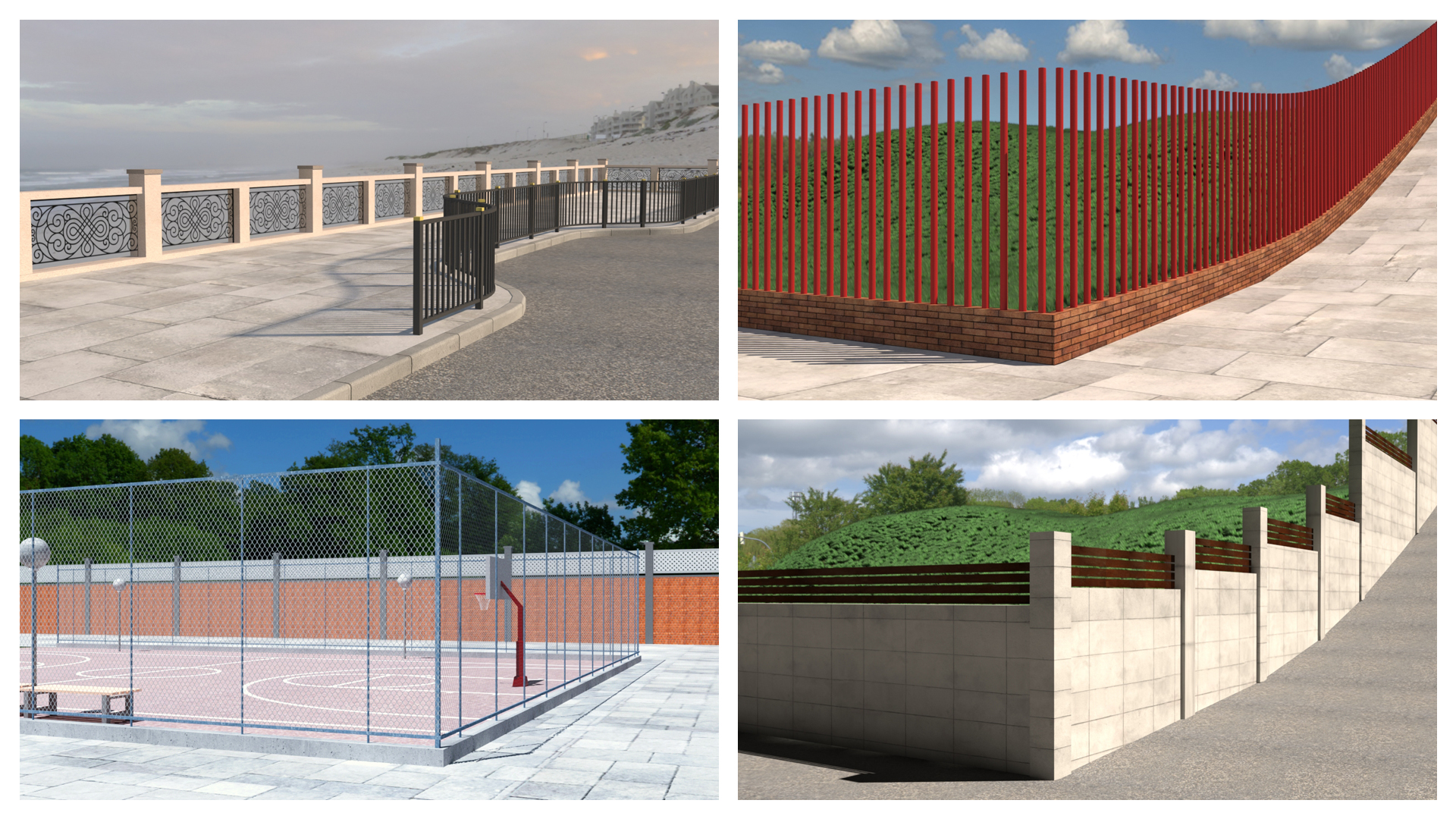 - Fence types: plane with texture, poles, palisade.*
