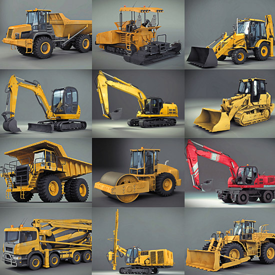 The product DOSCH 3D: Heavy Machines contains 20 very detailed and fully textured 3D-models of vehicles.