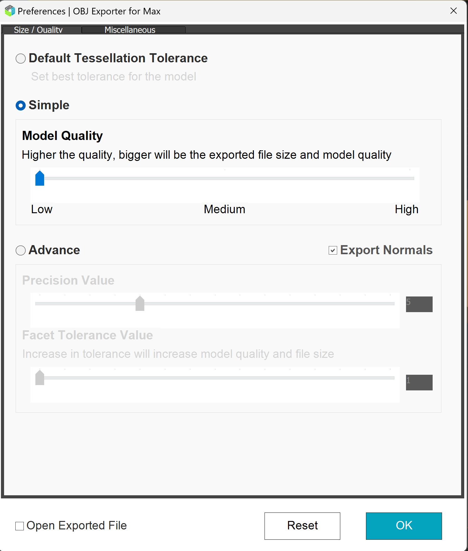 - Tessellation Options: Choose whether to tessellate at the body level or face level for optimal model fidelity.