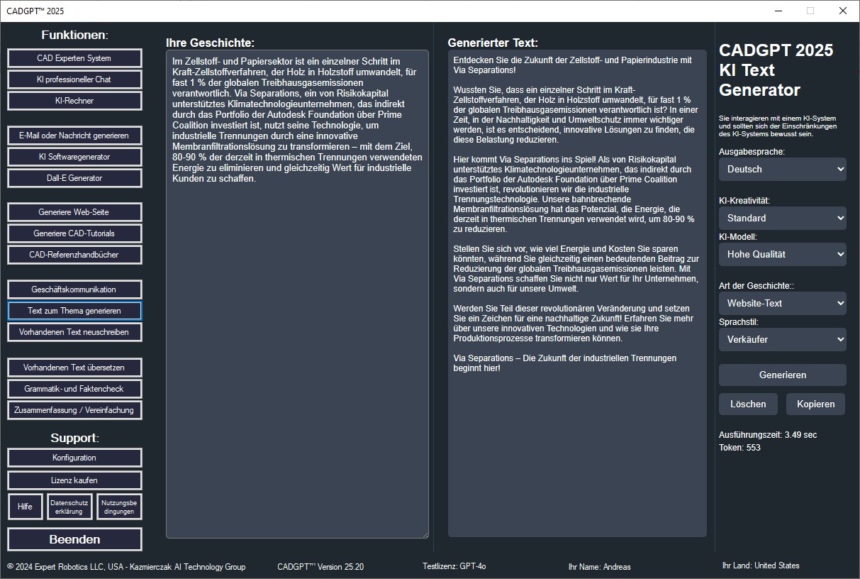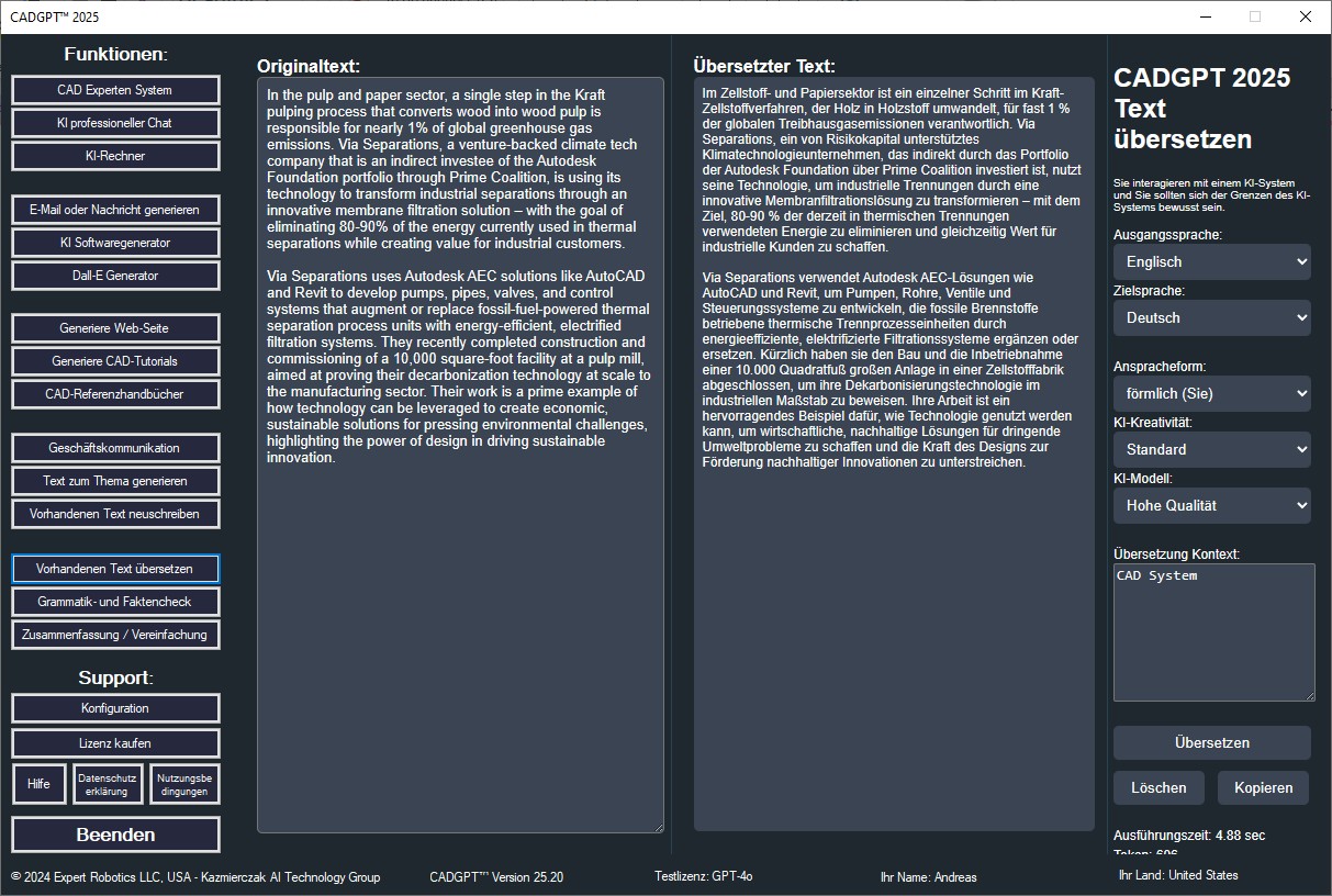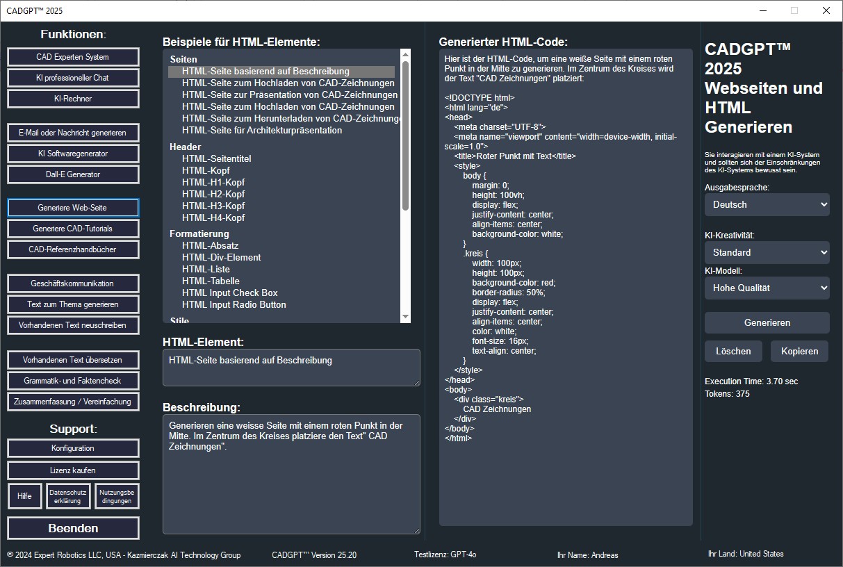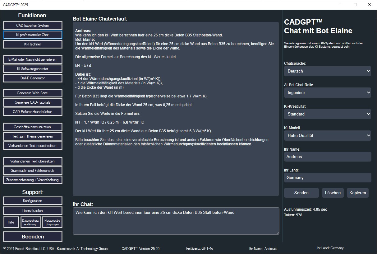 CADGPT 2025 - Künstlicher Intelligenz-Assistent für alle CAD-bezogenen Aufgaben und Designarbeiten. Angetrieben von ChatGPT und Expert Robotics Tools. Zu den Funktionen gehören ein KI-Rechner, ein KI-Textgenerator, ein ObjectARX- und LISP-Code-Generator, ein CAD-E-Mail-Generator und 24/7 CAD-Support.