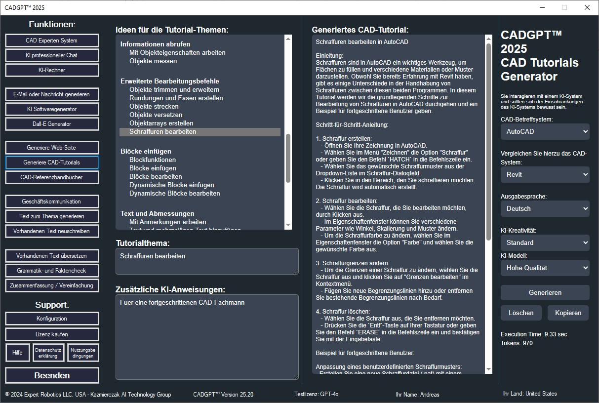 Wenn Sie auf Probleme mit Autodesk® AutoCAD® stoßen oder Hilfe bei der Suche nach einer Variablen oder einem Befehl benötigen oder Unterstützung bei der E-Mail-Erstellung benötigen, nutzen Sie einfach unser CADGPT 2025.