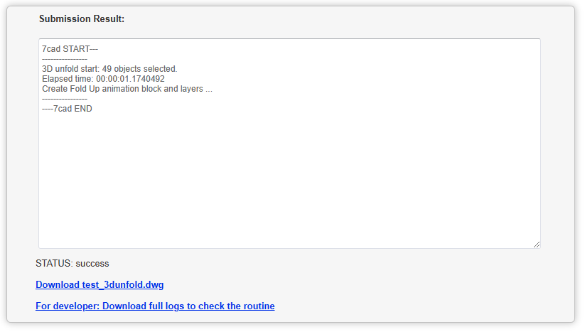 Wait for the Autodesk® Design Automation service to run for a while then you will have a download link to get your unfolded model drawing.
