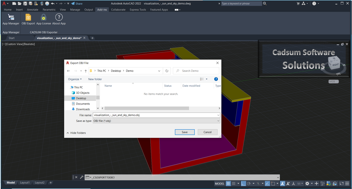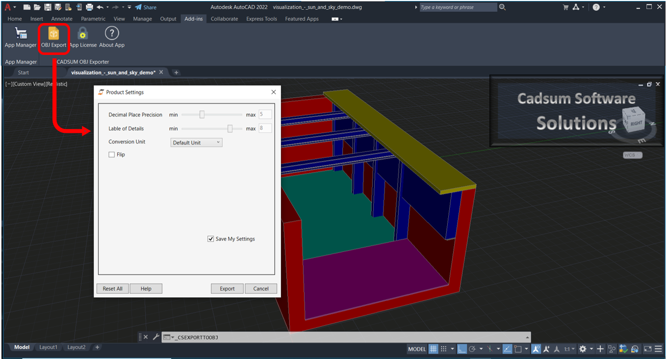 Cadsum OBJ Exporter for Autodesk® AutoCAD® - Paid