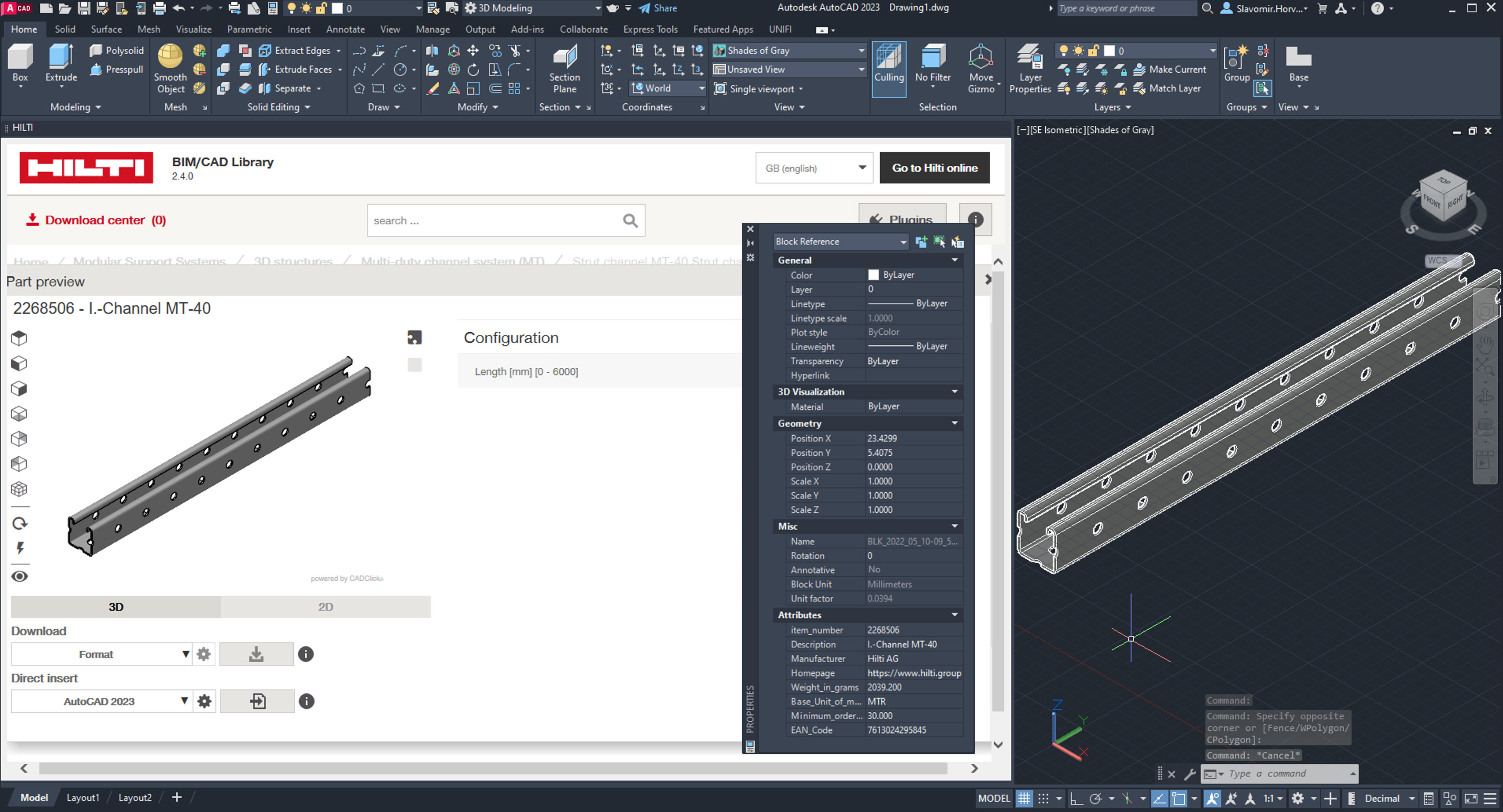 This command brings up a palette with the Hilti BIM/CAD Library.