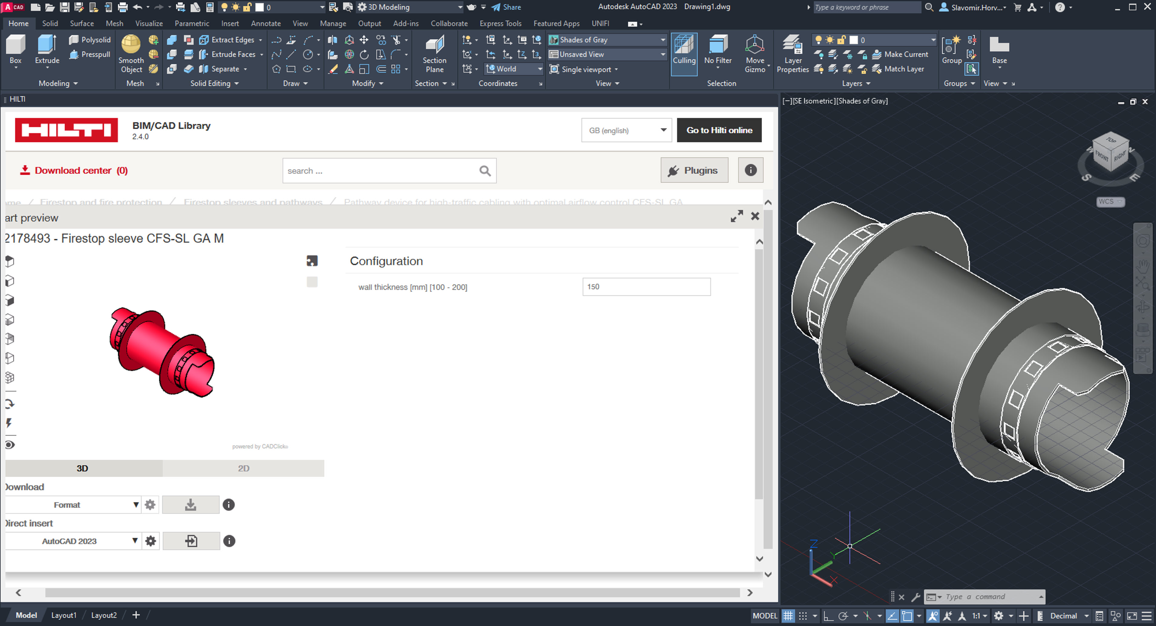 Remember: Autodesk® AutoCAD LT® VERSIONS DO NOT SUPPORT PLUGINS. If you use AutoCAD LT you can visit the BIM/CAD Library directly from here: http://hilti.cadclick.com