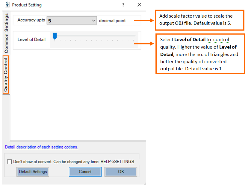 - Control quality and size of generated OBJ file