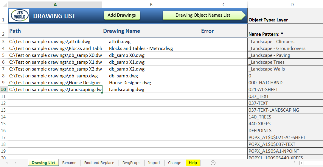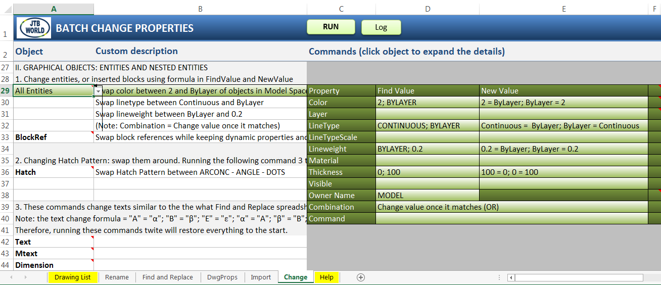 JTB Batch Change brings the Autodesk® AutoCAD® ActiveX Object Model to your command via Excel design spreadsheets.