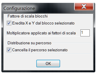 Inoltre è possibile configurare il programma (icona con le 2 rotelline poste in alto a destra) in modo che imponga un fattore di scala ai blocchi inseriti.
