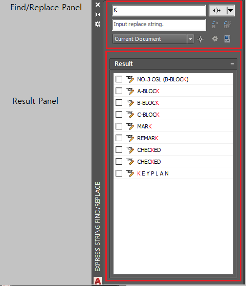 Find and Replace strings with the palette UI of Autodesk® AutoCAD®.