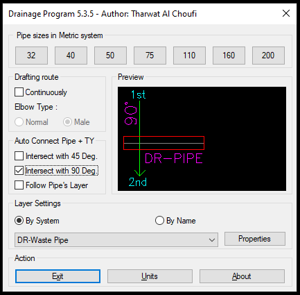 With this release 5.3.5 of the Drainage program is now having more Drainage fittings added to the program with more options to preview the presentation of the outcome before implementation with a bit different dialog forms for inserting fittings based on the desire of the user along with many options added via specifying two clicks only to get the job done based on your go.