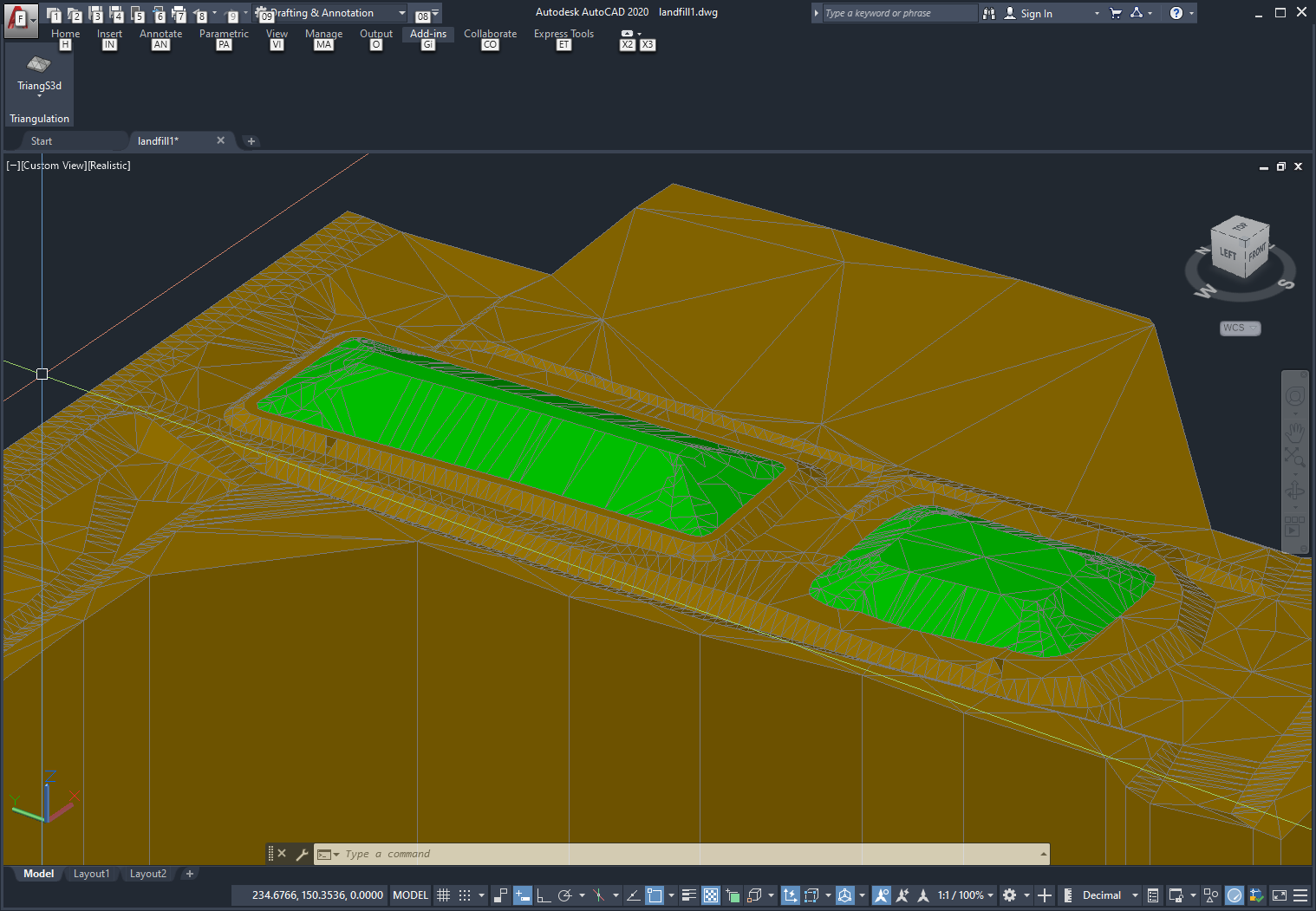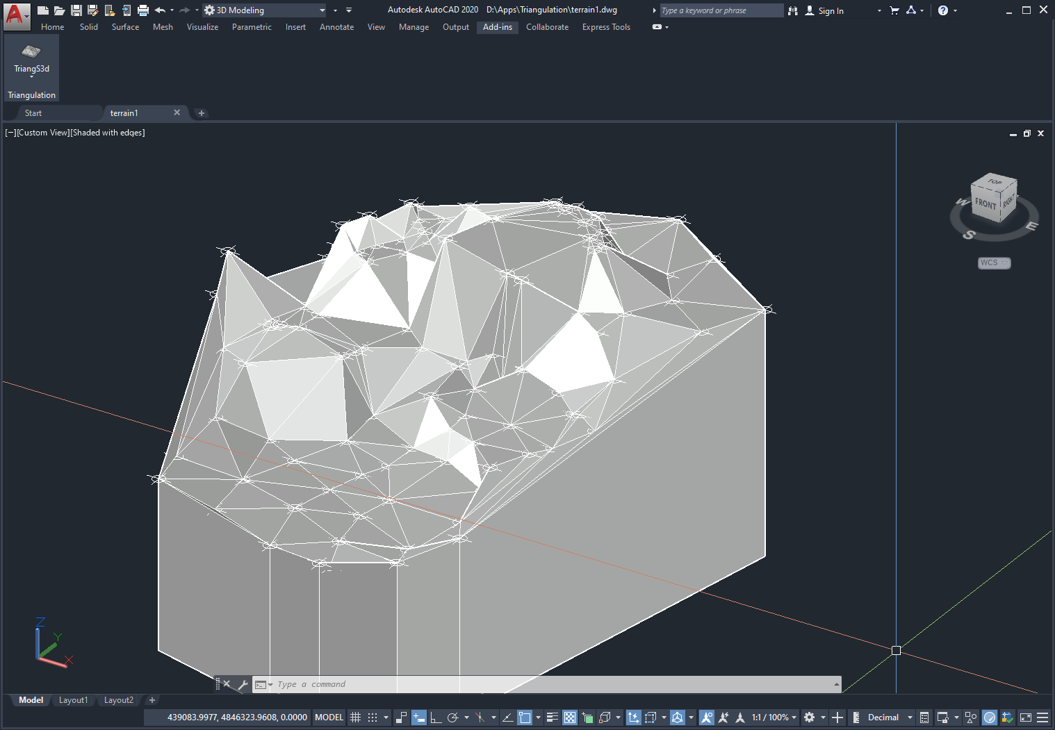 Triangulation creates a SubDMesh, Polyface Mesh or 3D Solid from a set of points using a Delaunay triangulation algorithm. The feature is very useful for terrain modeling.