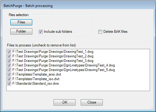 Purge the current drawing or launch a batch processing on several files (DWG, DWS, and DWT).