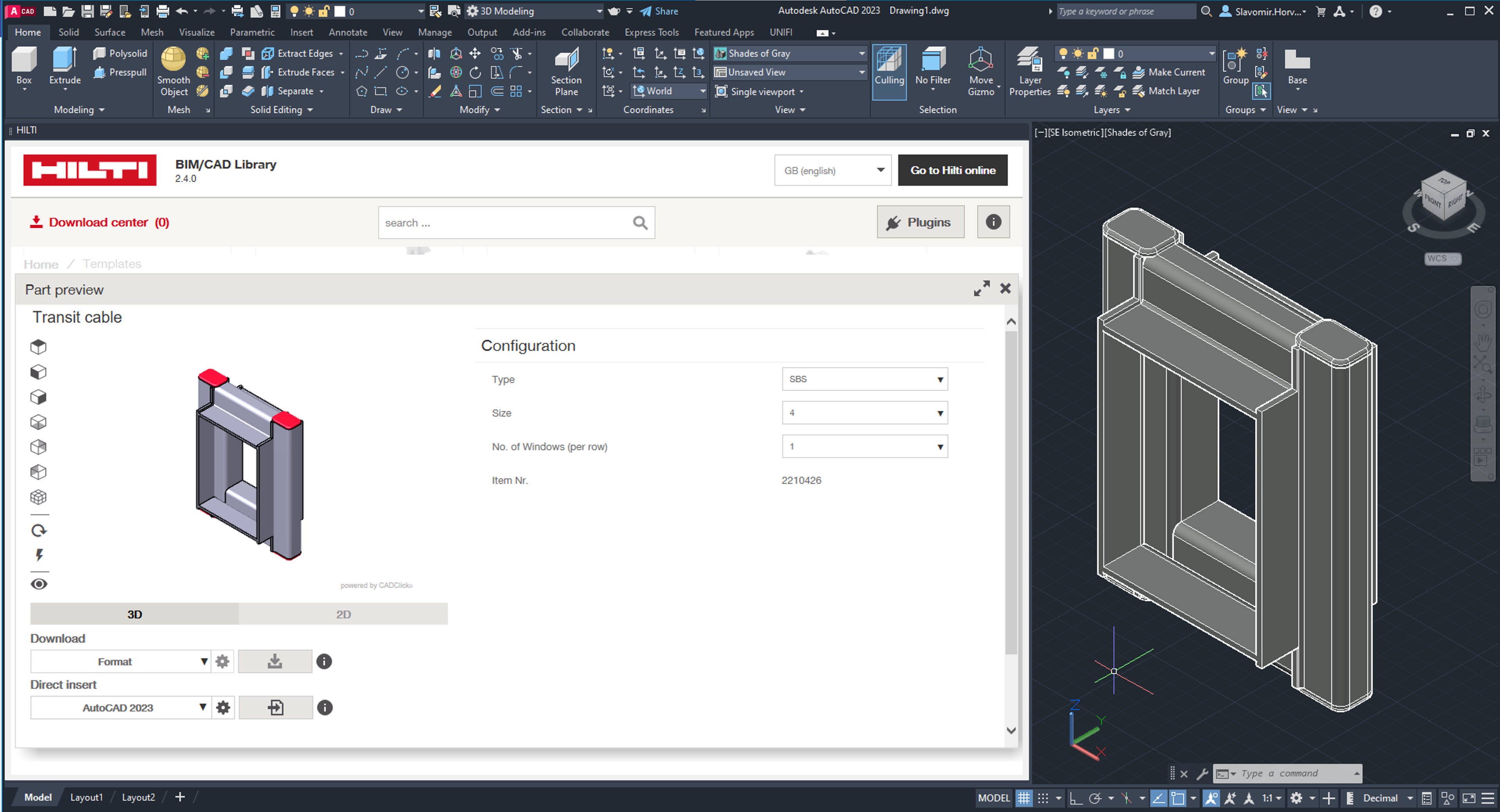 This Autodesk® AutoCAD® plugin allows you to access the Hilti BIM/CAD library and download BIM/CAD objects.