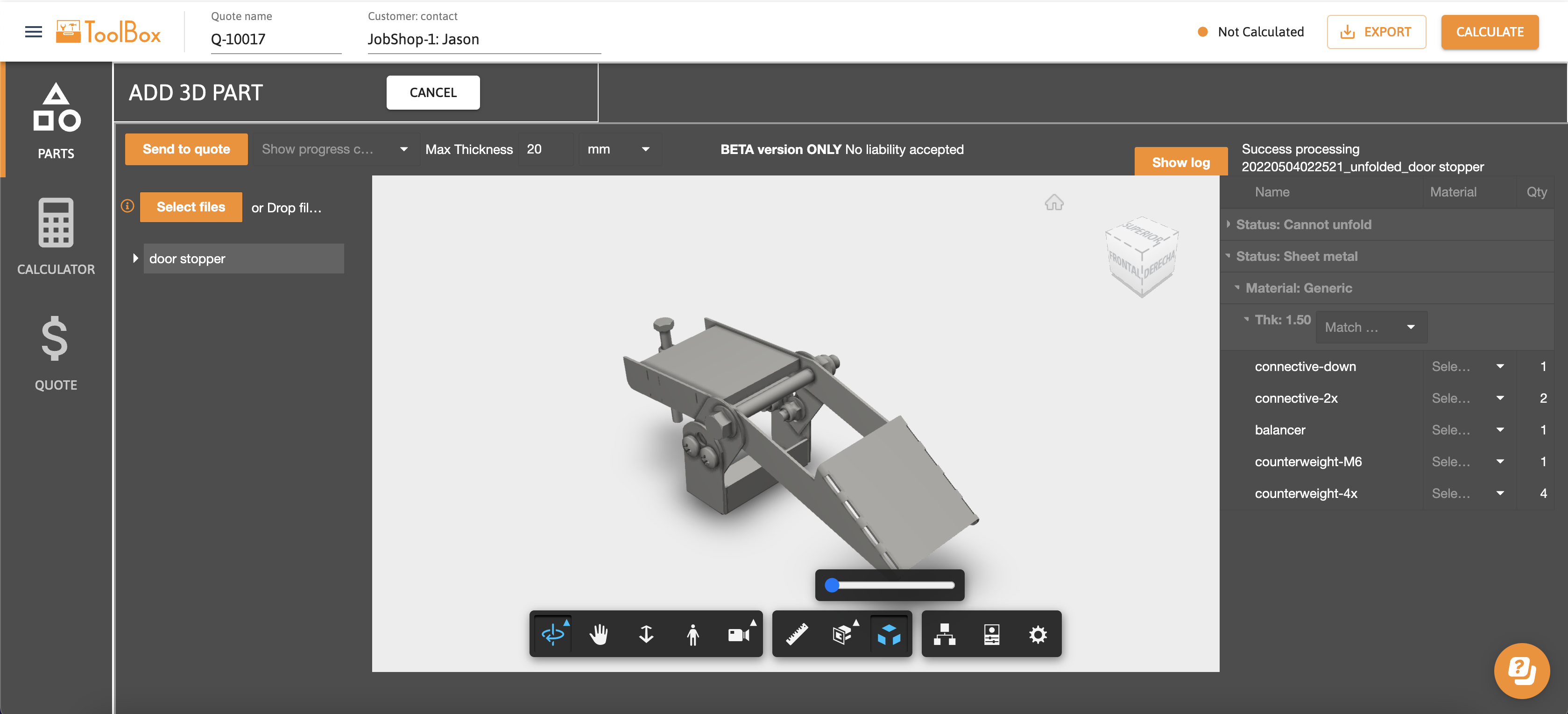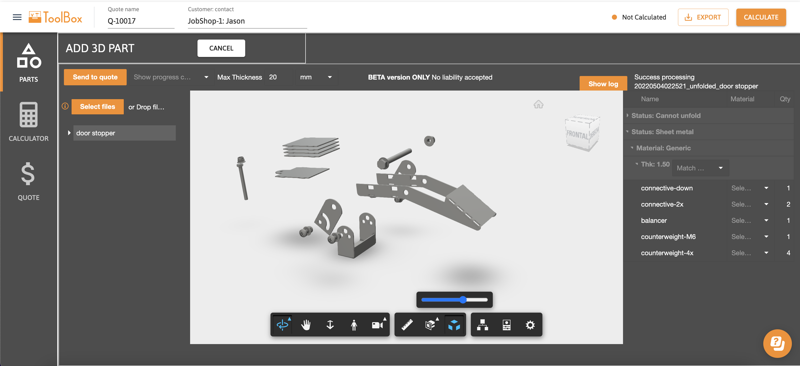 ToolBox is an all-in-one SaaS tool for quoting flat 2D and 3D models, including tube, and extracting 2D parts from PDF files. It is cloud-based and quick to set up (under 30 minutes). Features include: