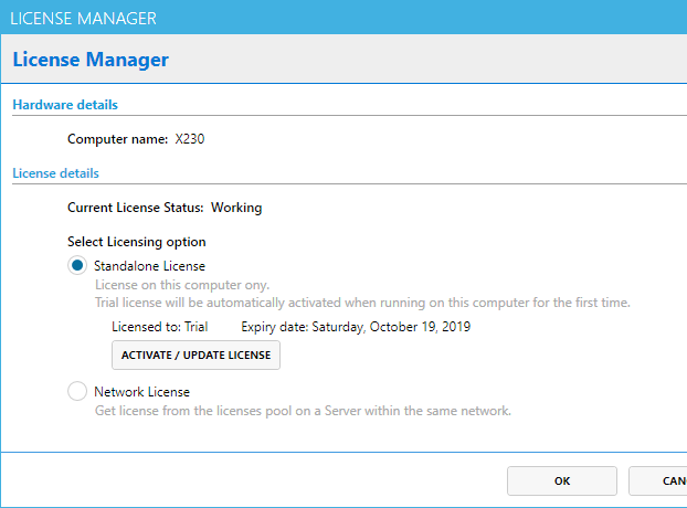 - For a trial period, please run the tool and select Standalone when the license dialog pops up. Then, run the tool again to start the trial period.