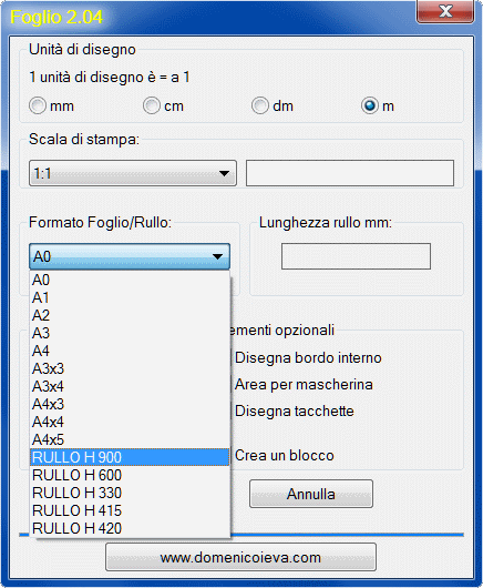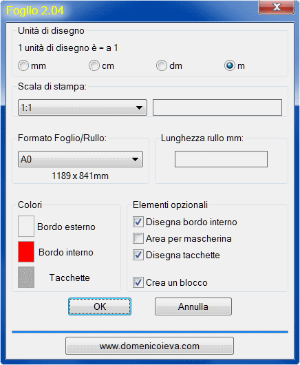 FOGLIO è un semplice programma che consente di disegnare le squadrature secondo le dimensioni della norma UNI EN ISO 5447:2002 in funzione della scala di stampa del disegno e delle unità di disegno.