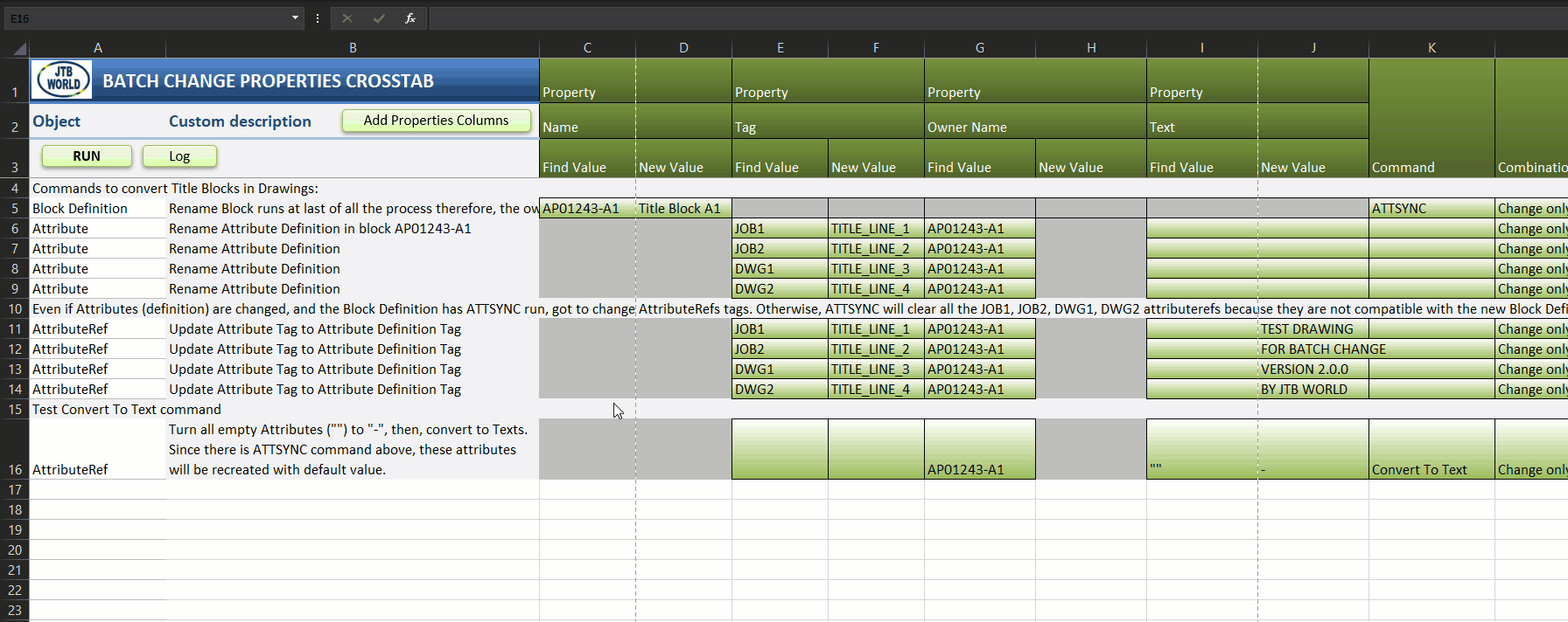 JTB Batch Change brings the Autodesk® AutoCAD® ActiveX Object Model to your command via Excel design spreadsheets.