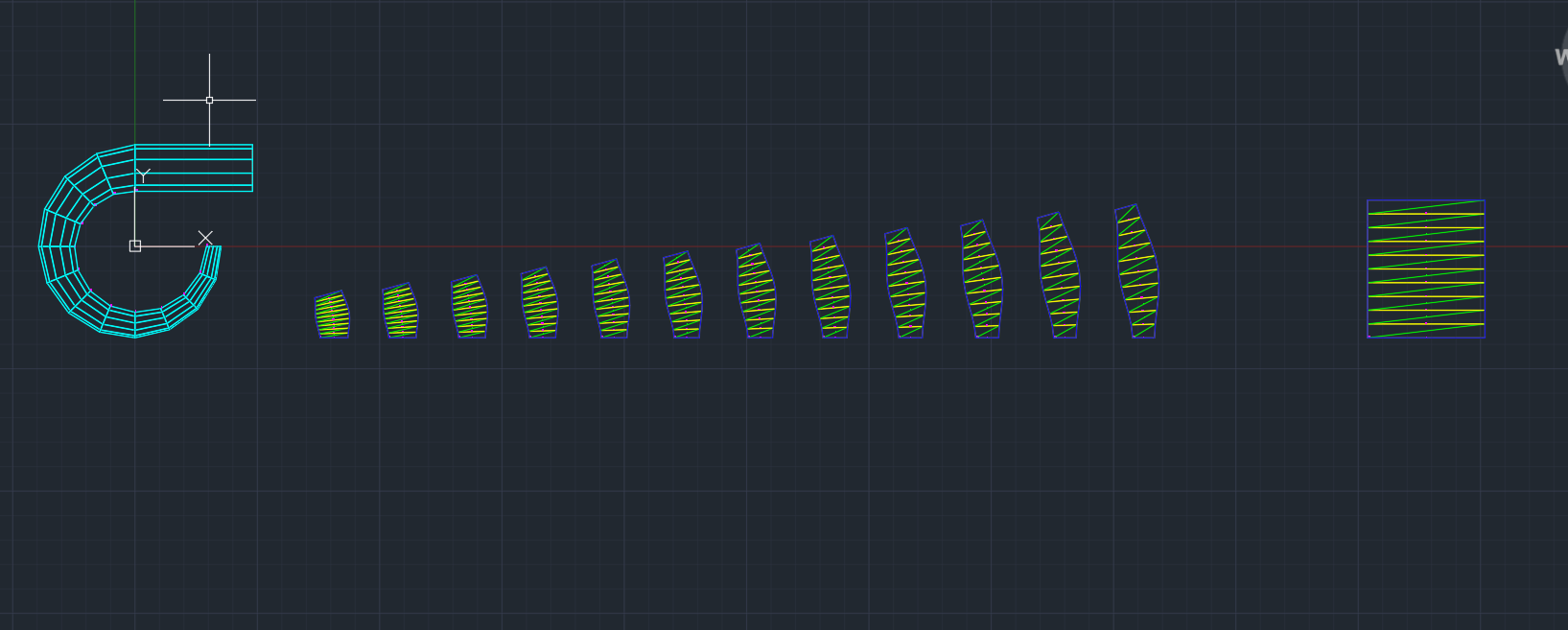 Cone is defined by 2 open curves (Arcs, Polylines and Splines). Curves can be on different UCS or even 3D curve (3Dpoly, 3Dspline). Each curve is divided into "Number of Segments" lines that are connected by 3D faces.