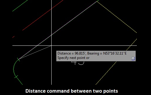 Distance: A tool to measure the distance and angle between two points or measure the length, delta, radius, tangent, chord, and a chord bearing along an arc. The elevation of the selected points is ignored.