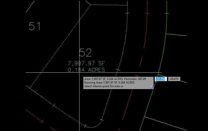 Area: A tool to display or output the area in Feet or Meters from selected polylines or points. The area labels are associated with the polyline (when the options are set to Object and Text), and when the polyline is edited, the area labels will update the new area.
