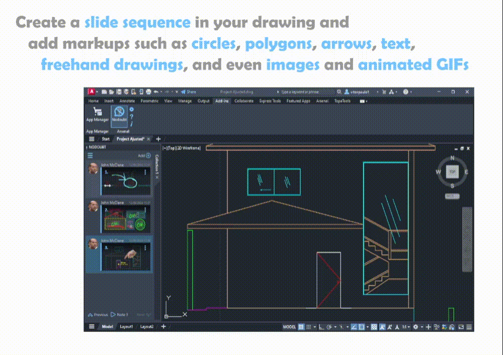 A Slide is a visual representation within a note that highlights and annotates specific areas of the CAD drawing using various markup tools.