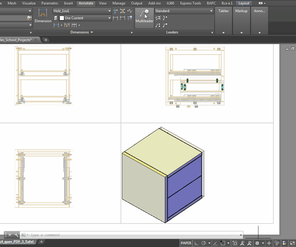 - In the 2D Wareframe mode (visual style) it is obligatory to indicate part contour lines. In the center of the circle will fail. Use EndPoint snap. But in mode, you can make a leader from internal (unseen) parts.